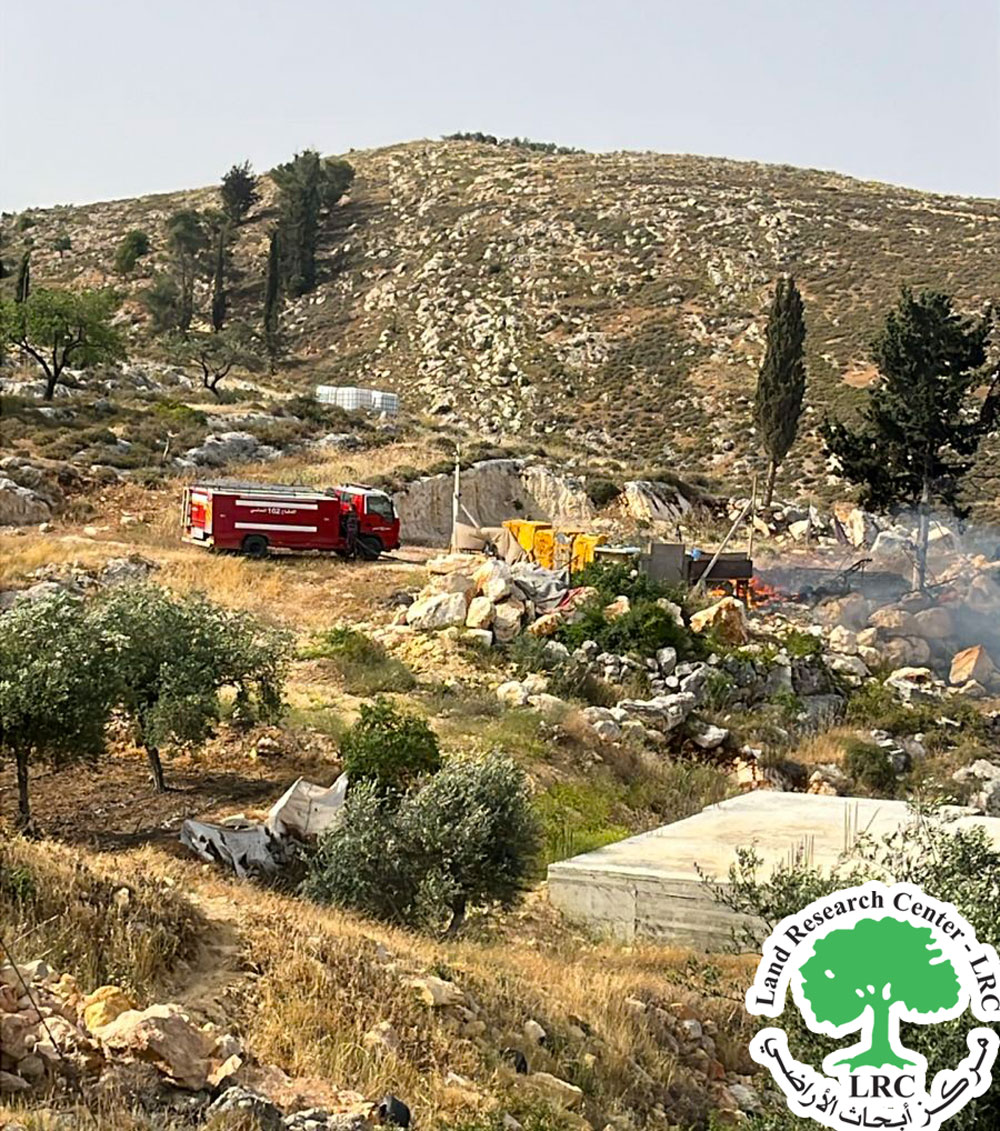 أحرق المستعمرون، يوم الخميس الموافق 1/5/2025م، مسكناً زراعيا وملحقاته، وعدد من الأشجار والخضروات الصيفية، في منطقة " الهبط" شرق بلدة ترقوميا، غرب محافظة الخليل.