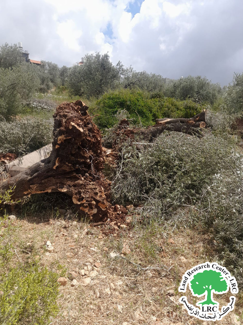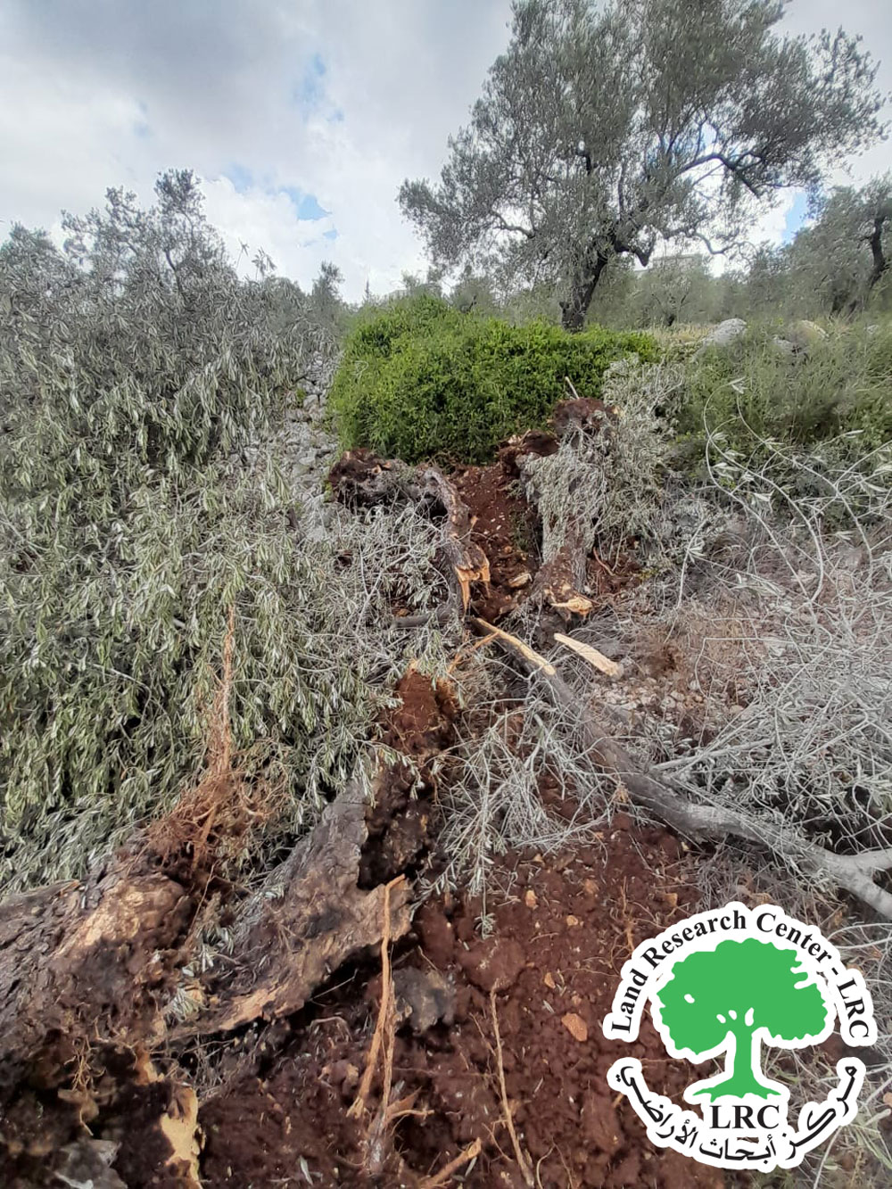 أراضي و قطع اشجار و التي زاد عددها عن 100 شجرة زيتون مثمرة، ولا تزال اعمال التجريف مستمرة ولا توجد حتى الان احصائية نهائية لأعمال التجريف، لقد دمر الاحتلال كل الأشجار وجرف القطع المطلة على الطريق الالتفافي والحق خسائر كبيرة بالمزارعين هناك".