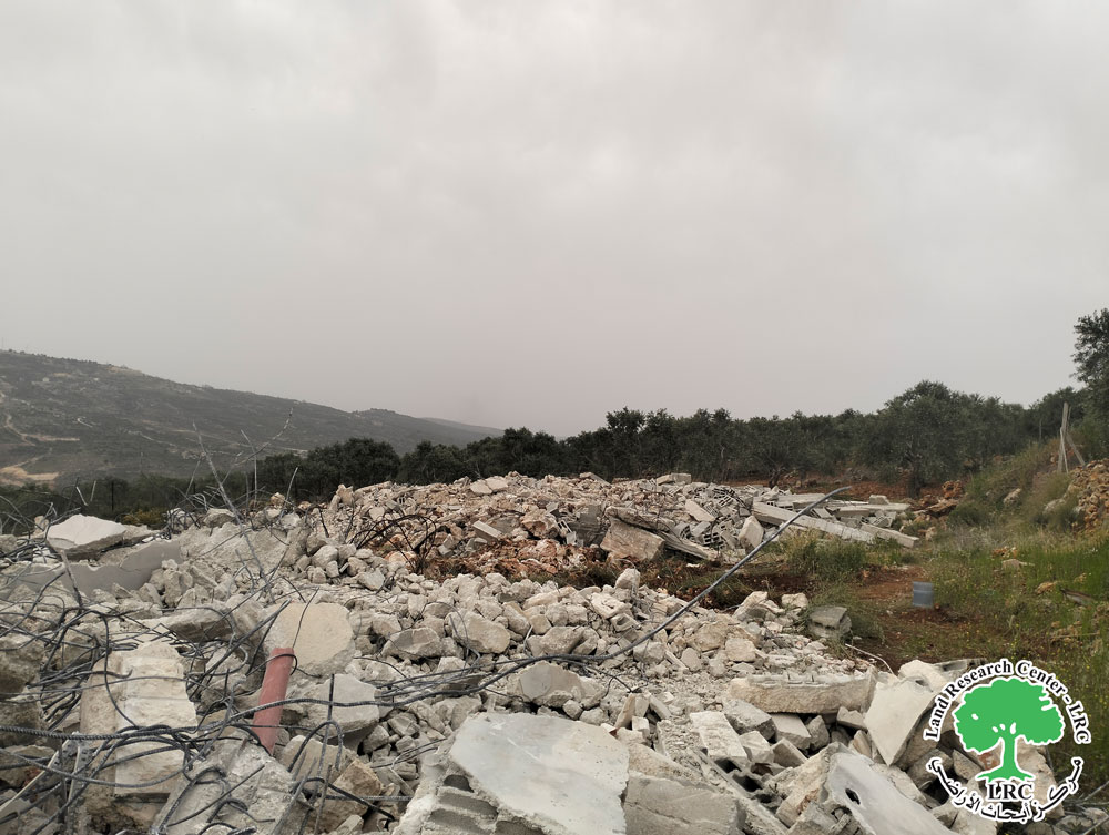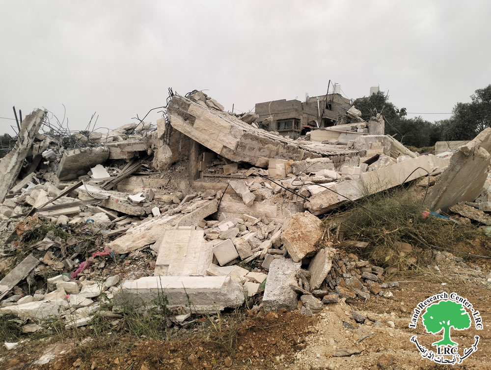 وقد قامت سلطات الاحتلال بتنفيذ اعمال هدم طالت منزلين متجاورين بحجة البناء دون ترخيص ضمن ما يسمى بالمناطق " ج" من اتفاق اوسلو، حيث استخدم الاحتلال جرافتين مدنيتين في تنفيذ اعمال الهدم هناك، و تم تدمير كامل المنزلين مع اجبار احد العائلات على الخروج الفوري قبل الهدم.
