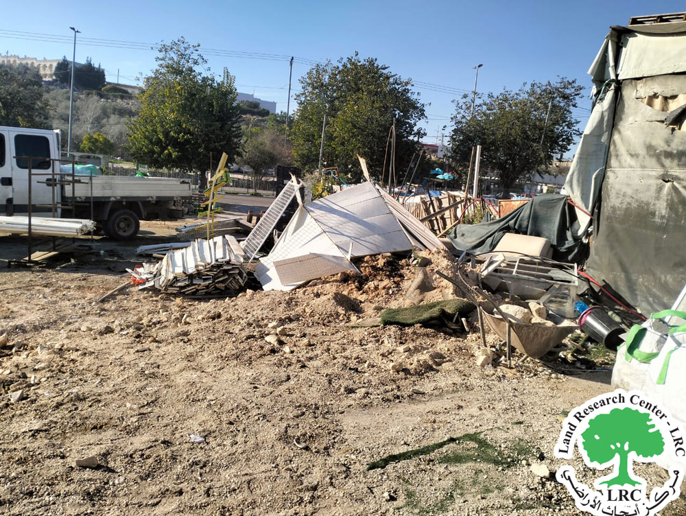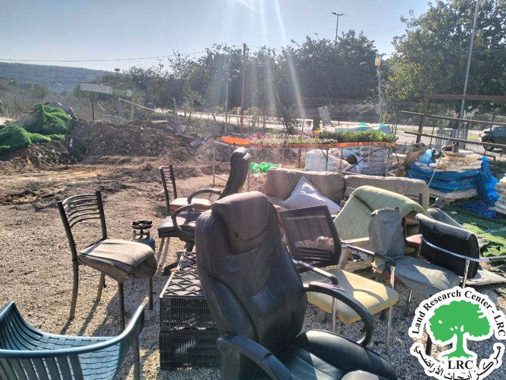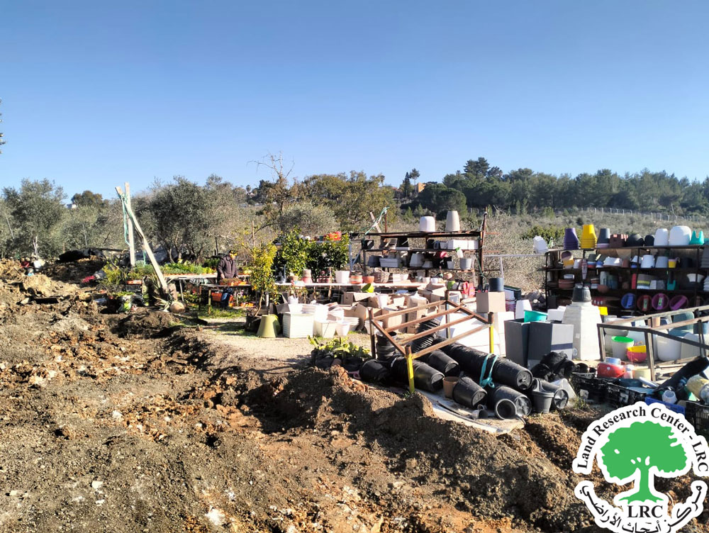 • تدمير مشتل زراعي على مساحة دونم، حيث تم تجريف أرضية من الباطون بمساحة 100 متر مربع، وتخريب الشوادر التي كانت تستخدم كغطاء للمشتل.