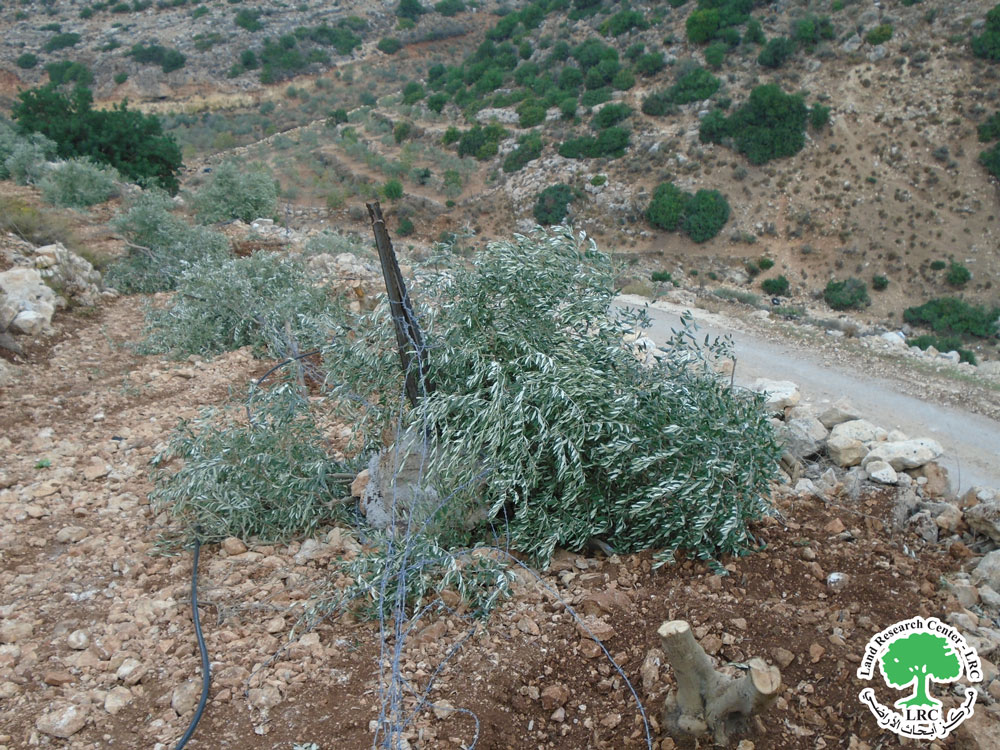 فقد استهدف المستعمرون في اعتداءهم قطعة أرض زراعية تبلغ مساحتها أربعة دونمات، مملوكة للمزارع محمود عبد الفتاح حجاج، المعيل لأسرة مكونة من (2) من بينهم أنثى واحدة، حيث شرع المستعمرون، وعبر أدوات حادة، بنشر وقص سيقان 14 شجرة زيتون بعمر 60 عاماً، مما ألحق أضراراً كبيرة وكلية بالأشجار.
