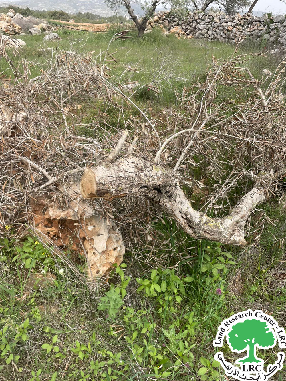 ‘’ I reported Palestinian Civil Liaison Office, just a few days ago, we were allowed to us to entering and checking up the land, and we saw settlers had completely cut 60 olive trees. As all the trees in the land were burned or cut down, noted that the land produces no less than 20 tins of olive oil in each season.’’