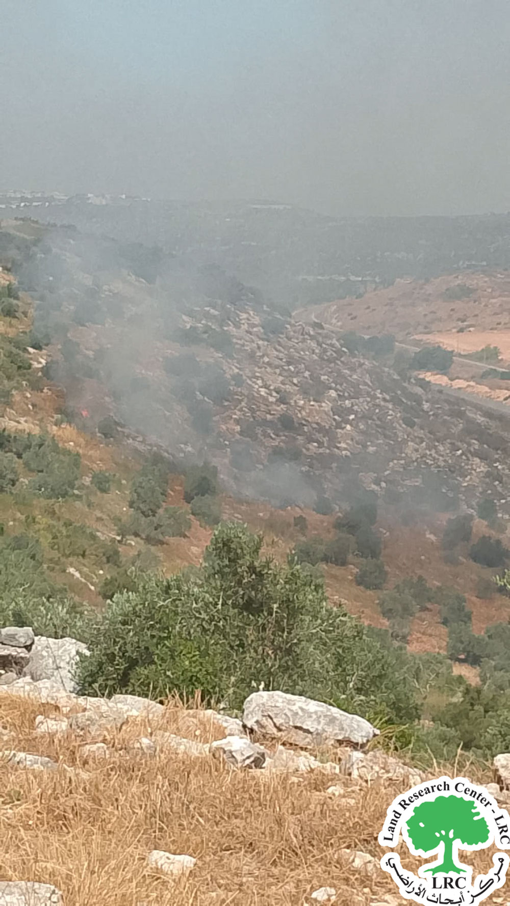 In May, 5th 2025, Monday, Dahr Al Abed village located south Jenin witnessed an attack by the Israeli occupation forces in the hours of afternoon, they began to firing of sound and flash grenades, which resulted to setting fire in olive trees in the area that near to the annexation and expansion wall.