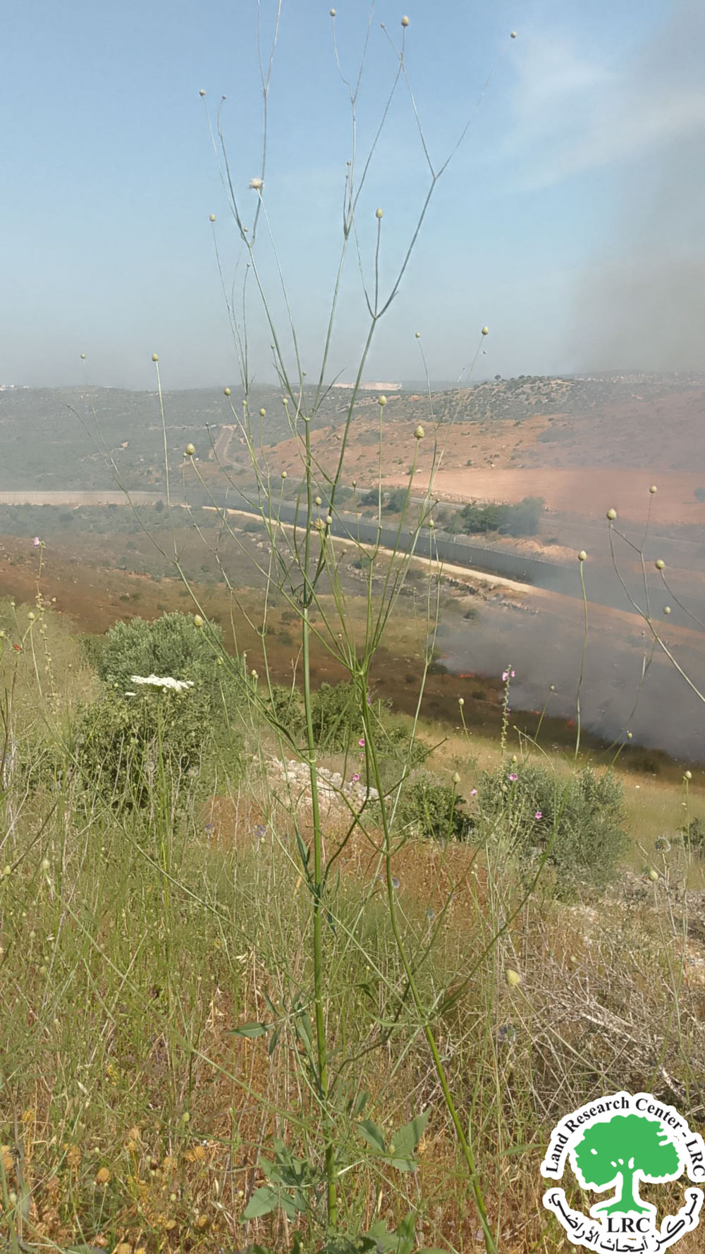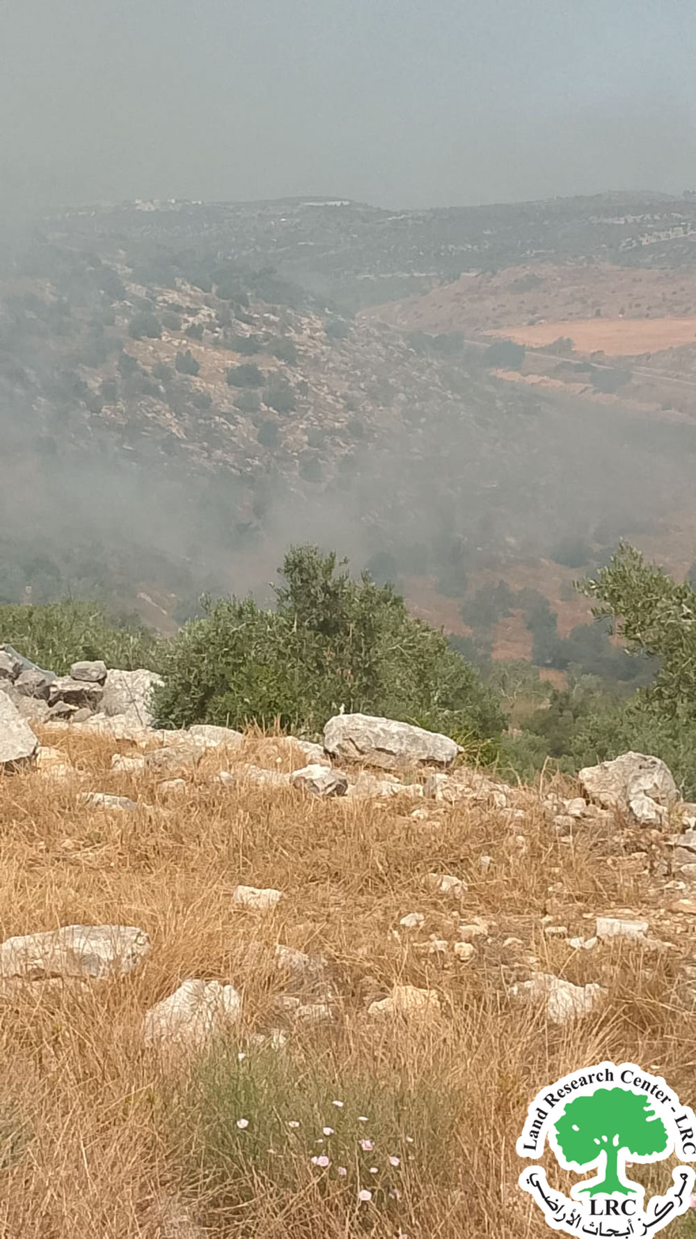 It’s worth mentioning that high temperatures contributed to expanding the fire to about 52 dunams, as the flames expanded to other neighboring lands for more than hour and half before the Palestinian civil defense come from Ya’bud town, as a result 248 olive trees were burned aging 9-15 years and completely damaged.