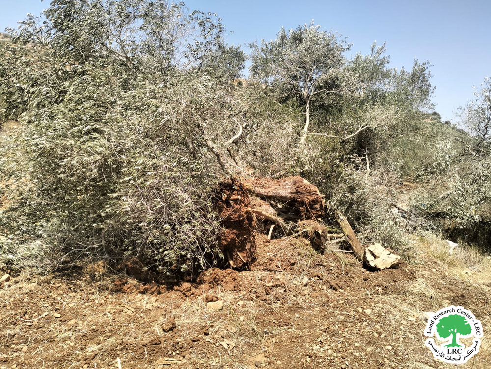 The Israeli Occupation Uproot 42 Olive Trees from Qaryut Village Lands/ Nablus Governorate
