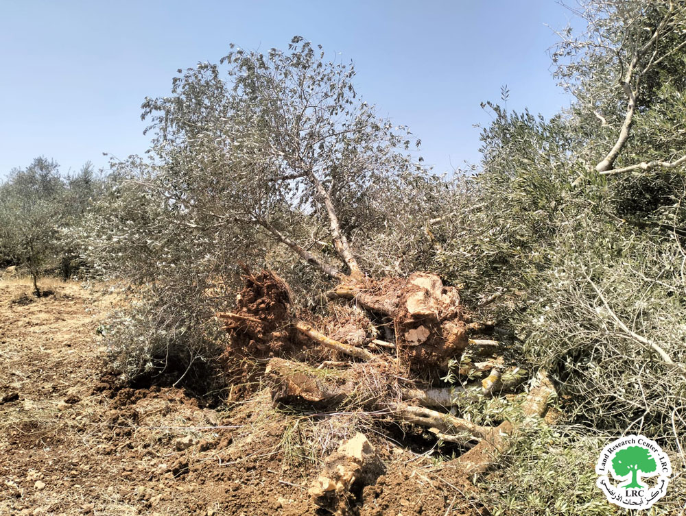 The Occupation Forces Ravage Agricultural Lands and Uproot 169 Olive Trees in Sinjil Town, North Ramallah