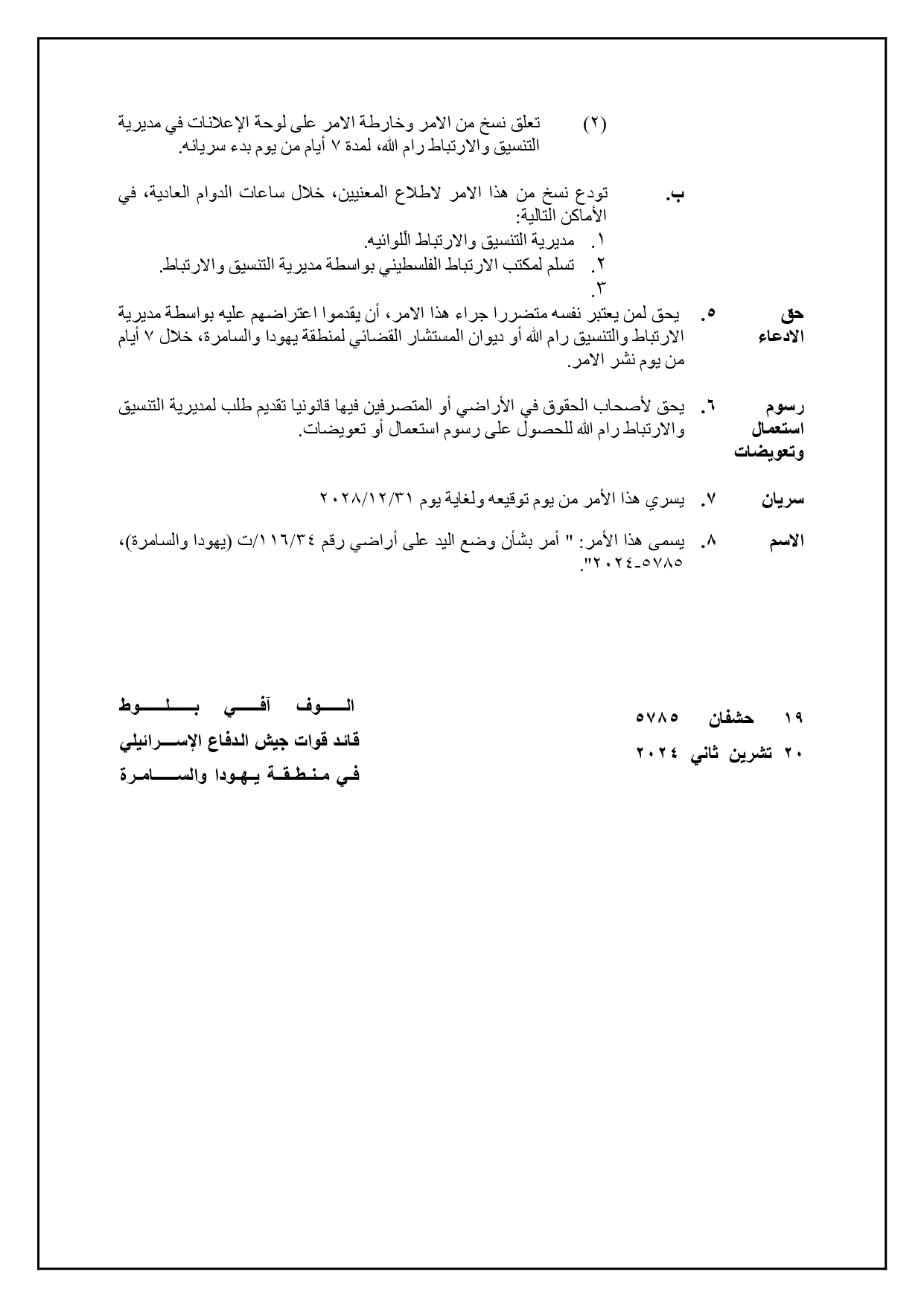 • 2025-08-07 The Israeli Military Occupation Notifies 40 Fruitful Olive Trees with Removing in Al Nabi Salih Village/ North Ramallah