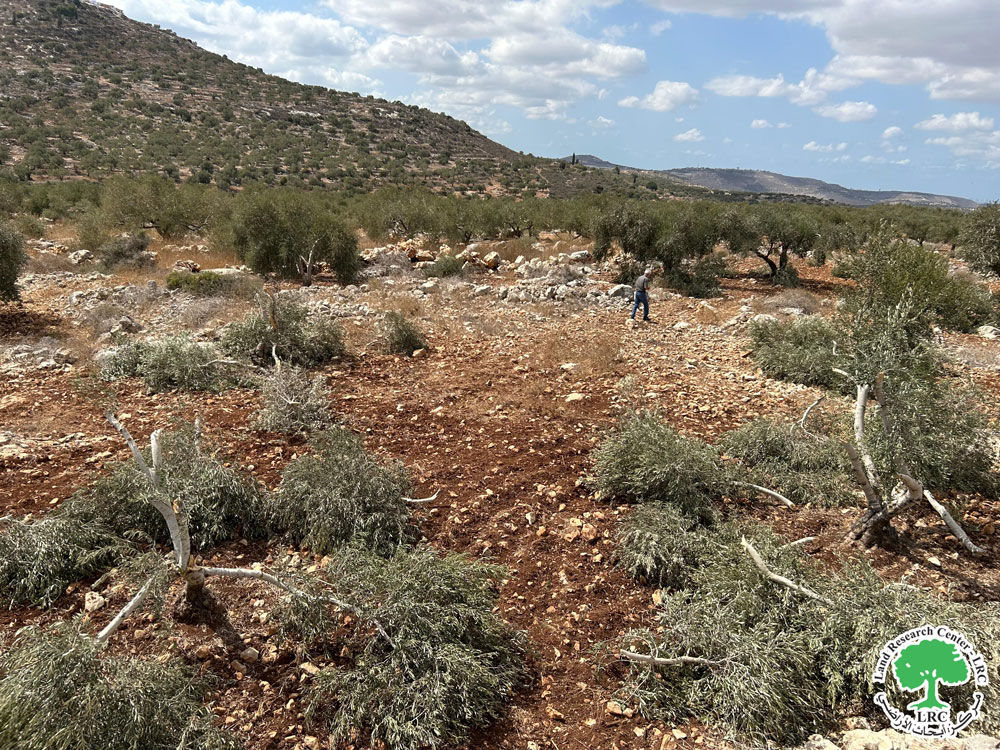 The Occupation Forces Ravage Agricultural Lands and Uproot 169 Olive Trees in Sinjil Town, North Ramallah
