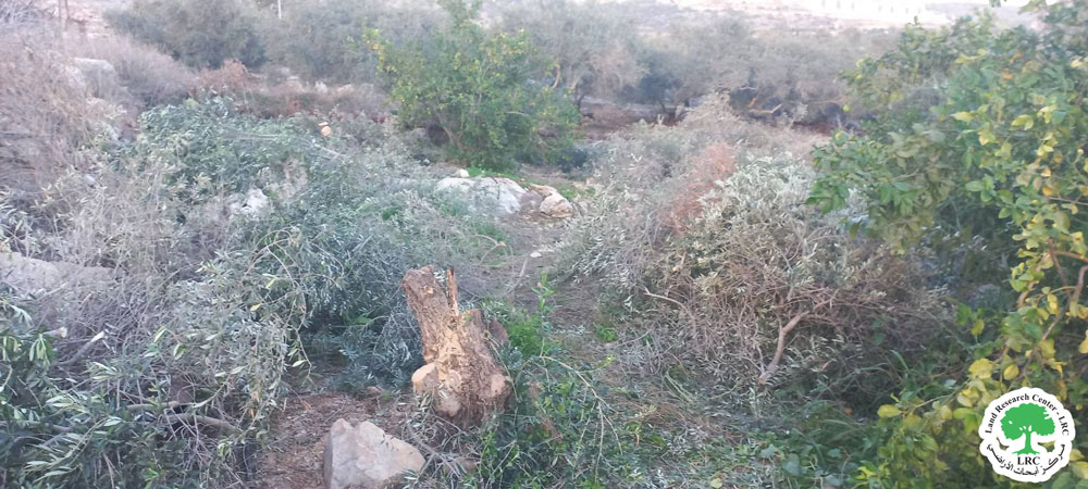 The Israeli Occupation Uproot 42 Olive Trees from Qaryut Village Lands/ Nablus Governorate