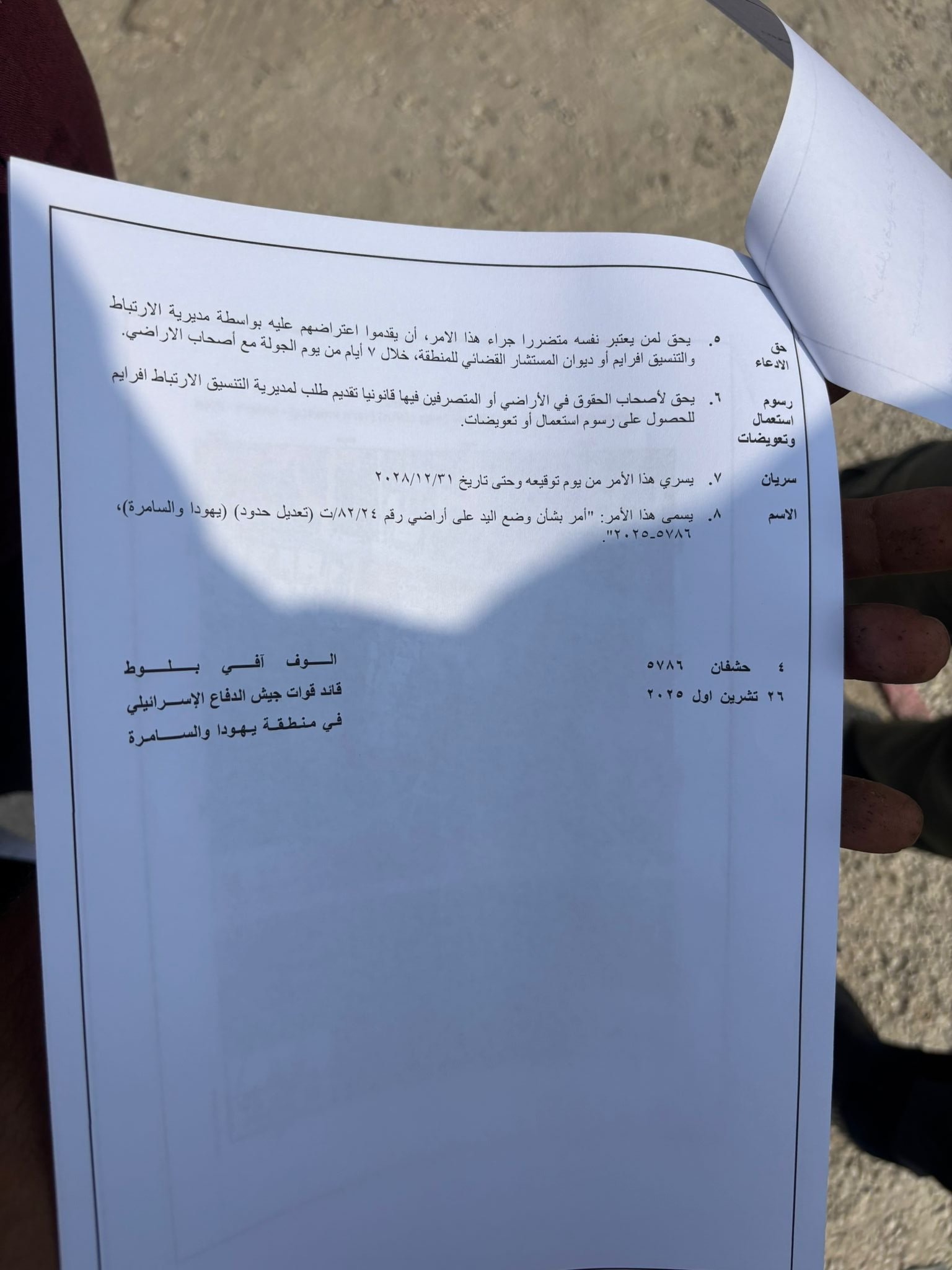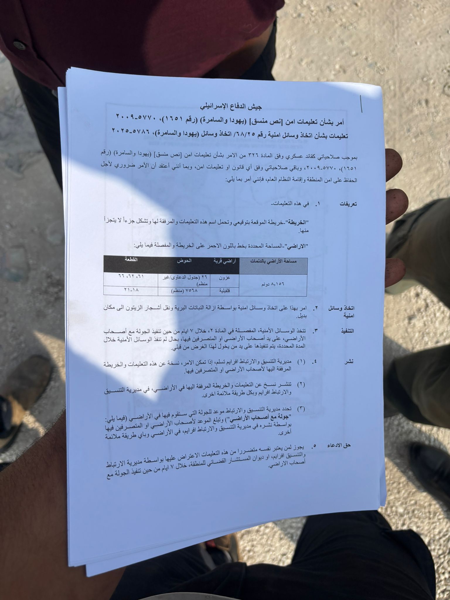 The Israeli Military Occupation Notifies 40 Fruitful Olive Trees with Removing in Al Nabi Salih Village/ North Ramallah