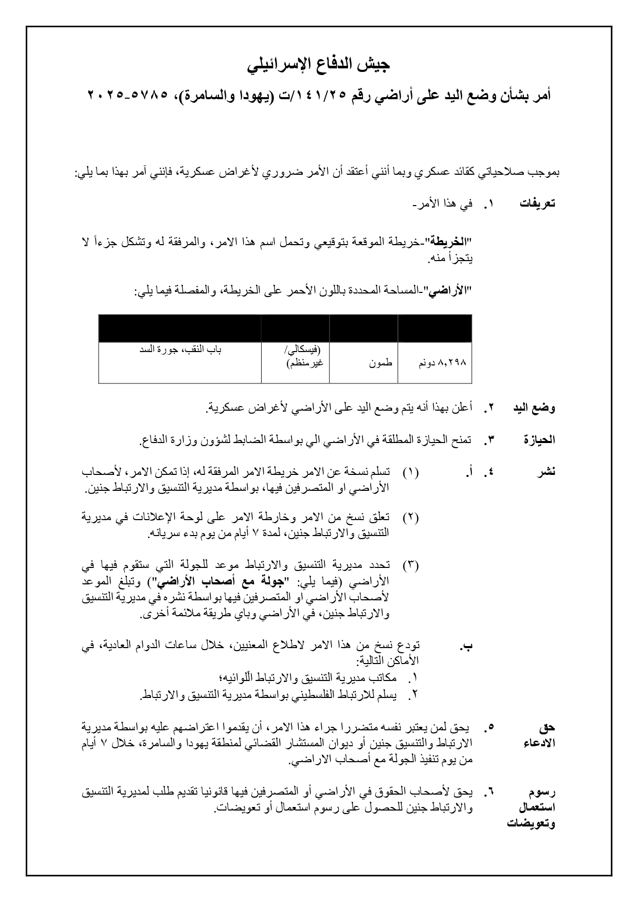 • 2025-08-07 The Israeli Military Occupation Notifies 40 Fruitful Olive Trees with Removing in Al Nabi Salih Village/ North Ramallah