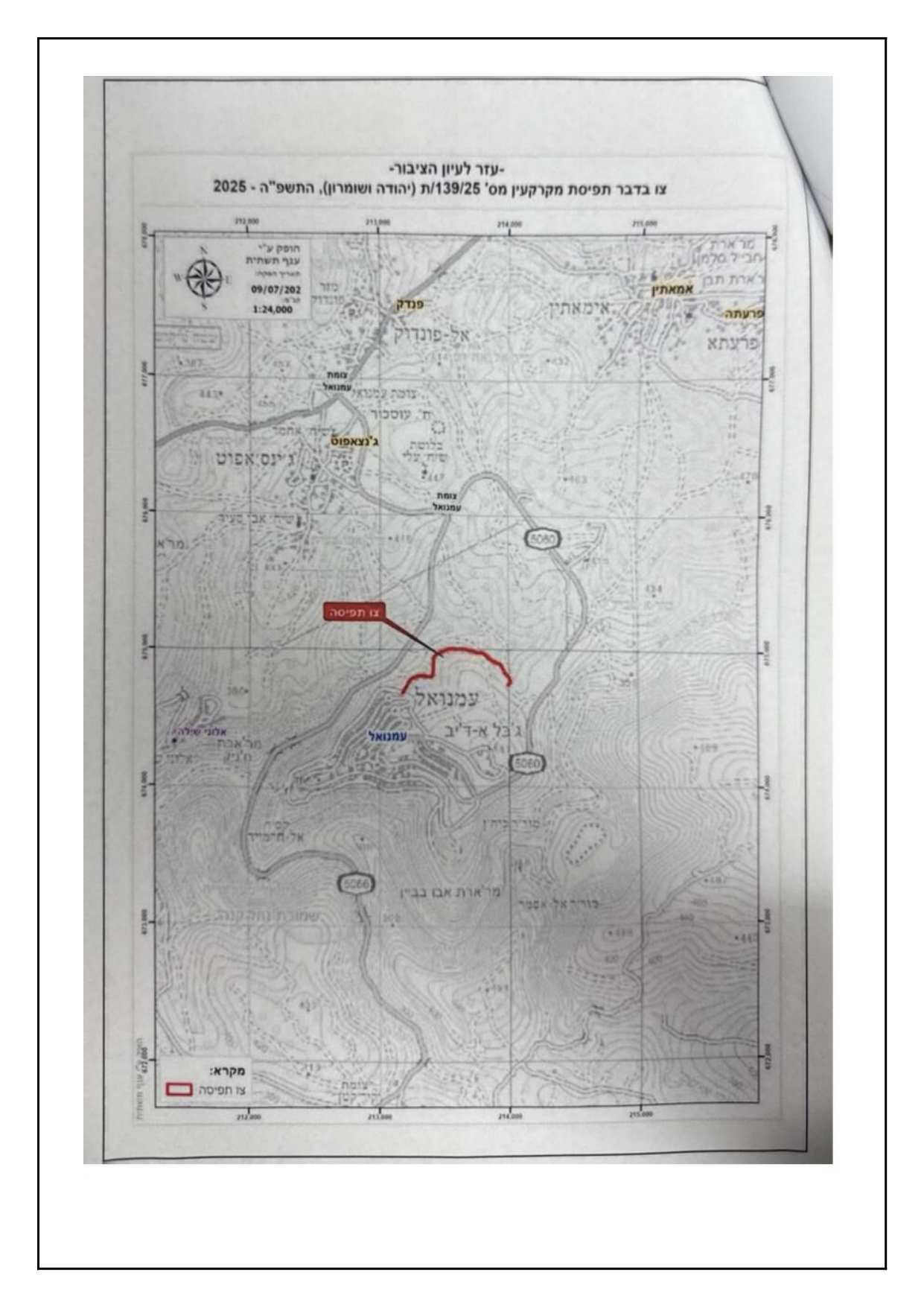 • 2025-08-07 The Israeli Military Occupation Notifies 40 Fruitful Olive Trees with Removing in Al Nabi Salih Village/ North Ramallah