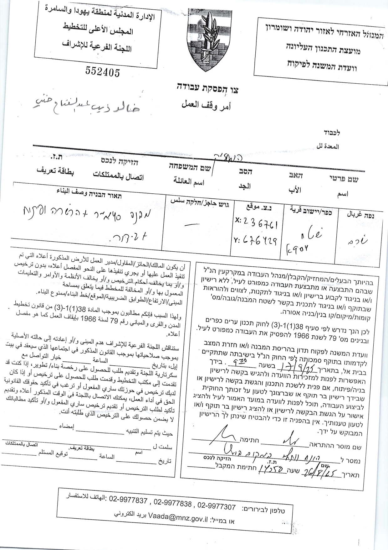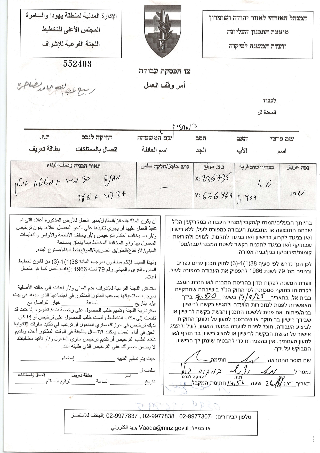 • 2025-08-07 The Israeli Military Occupation Notifies 40 Fruitful Olive Trees with Removing in Al Nabi Salih Village/ North Ramallah