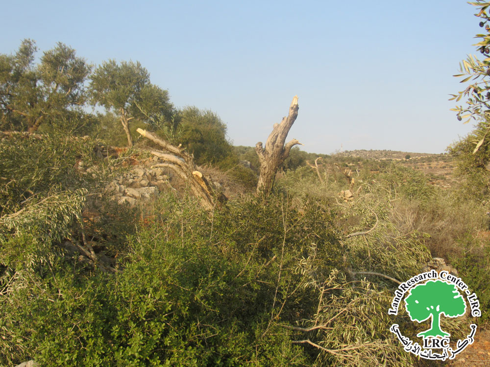 يذكر أن المستعمرين استهدفوا قطعة أرض مساحتها (4) دونم، تعود في ملكيتها الى المزارع يونس مصطفى يونس معطان، حيث استغل المستعمرون عدم قدرة أي مزارع بالتواجد هناك في قص وتخريب 40 شجرة زيتون معمرة، وذلك عبر نشر أغصانها و إلحاق أضرار كبيرة بها.