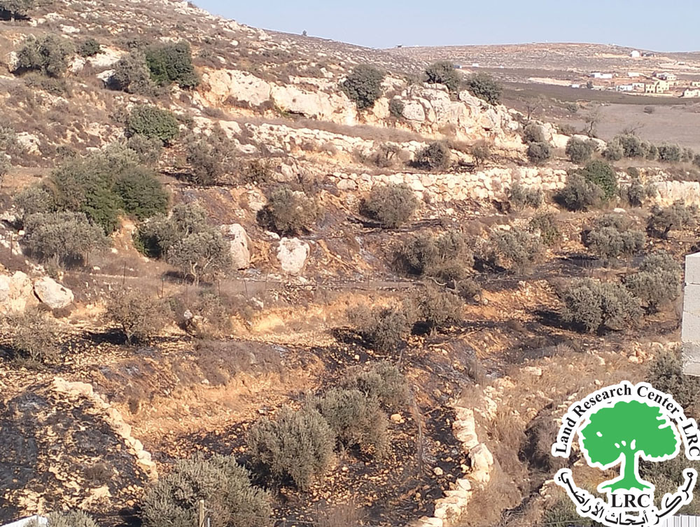 تتصاعد الهجمة الاستعمارية على الأراضي الزراعية والممتلكات بأشكال مختلفة، وغالباً ما تكون هذه الهجمات لا تسبب ضرراً على المواطن الفلسطيني فحسب بل على البيئة التي يعيش فيها، ومن هذه الاعتداءات هي حرق الأراضي الزراعية والممتلكات مما يتسبب في تدمير كامل النظام البيئي الزراعي والنظام البيئي الطبيعي في المنطقة نتيجة اشتعال النيران، كذلك يتم تدمير التربة حيث يضطرب توازن الكربون وتتناقص كمية المادة العضوية وينخفض النشاط الميكروبيولوجي الأمر الذي تقل قدرة التربة على الاحتفاظ بالماء مما يمنع معدل الجريان السطحي نتيجة حرق الأشجار .