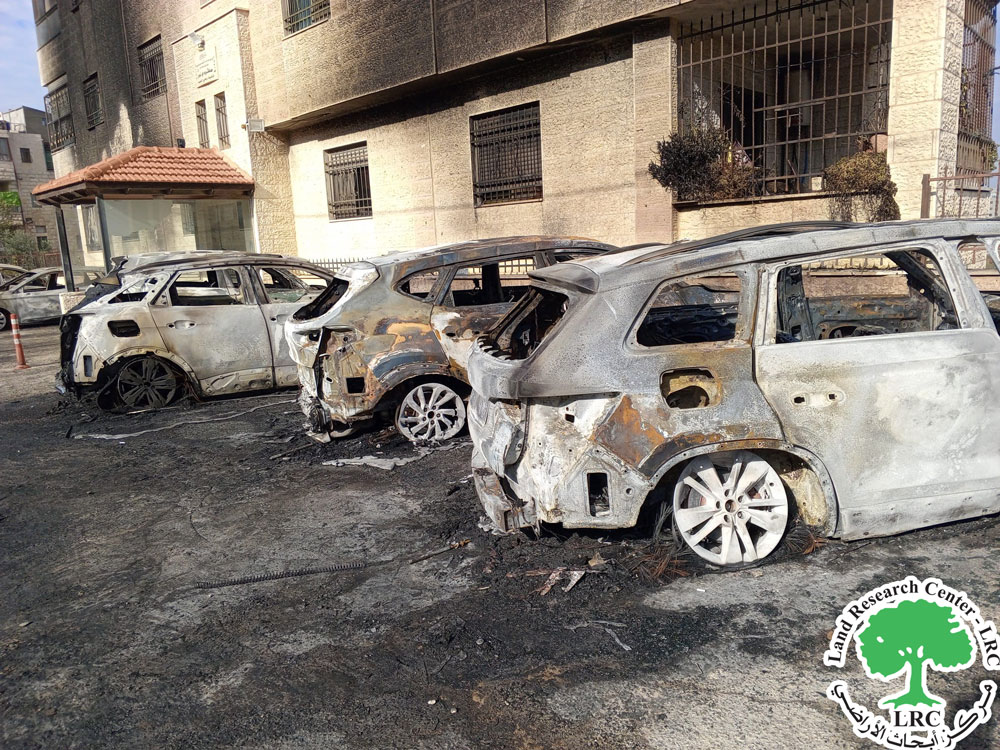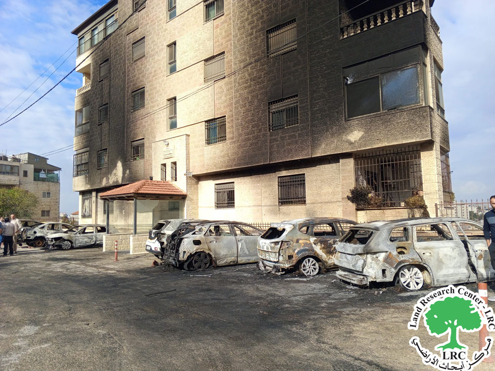إحراق 18 سيارة وواجهة بناية سكنية في مدينة البيرة / محافظة رام الله | LRC