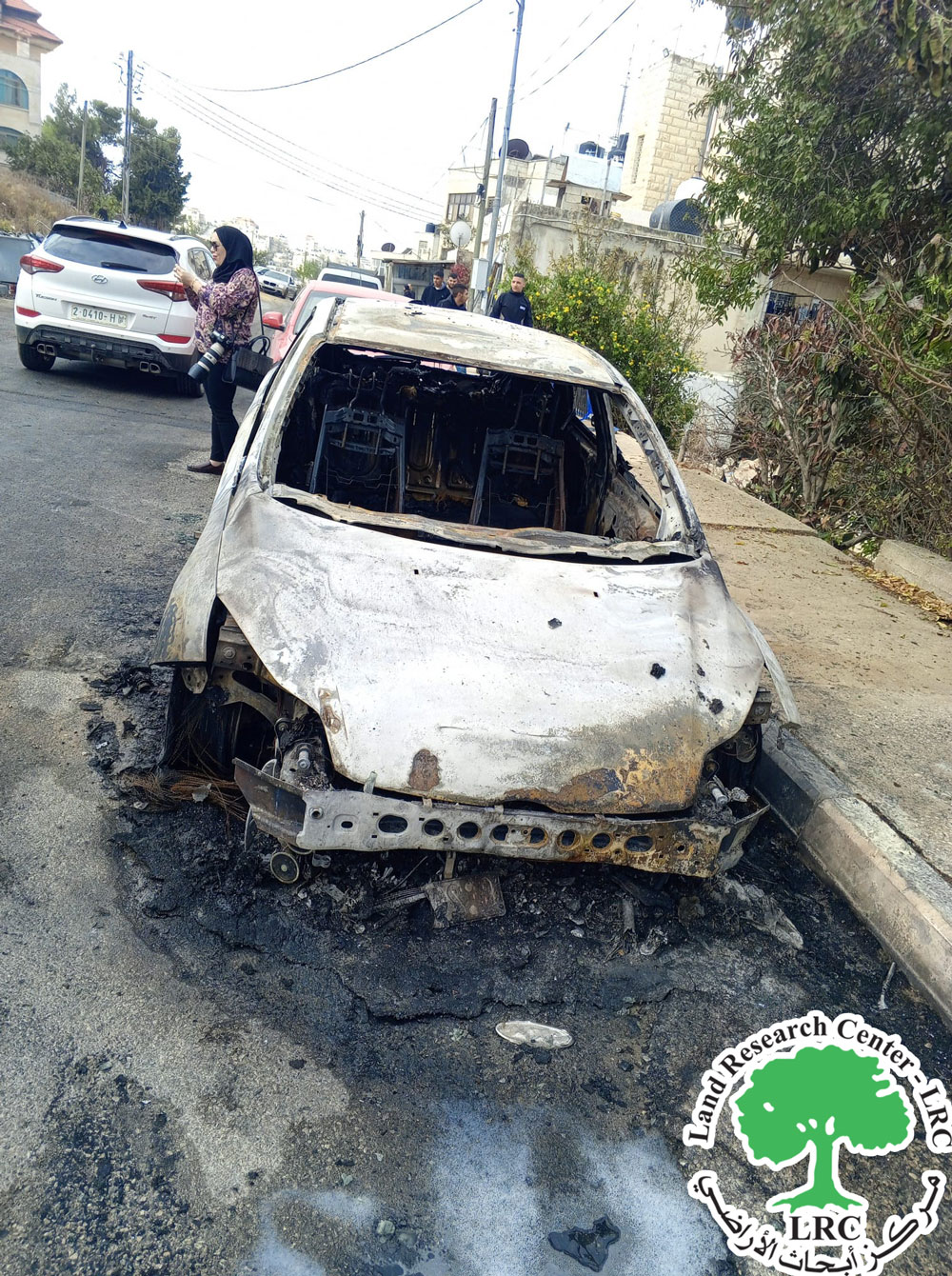 • الانتهاك:  إحراق   عدد من المركبات  وتخريب  ممتلكات   فلسطينية.