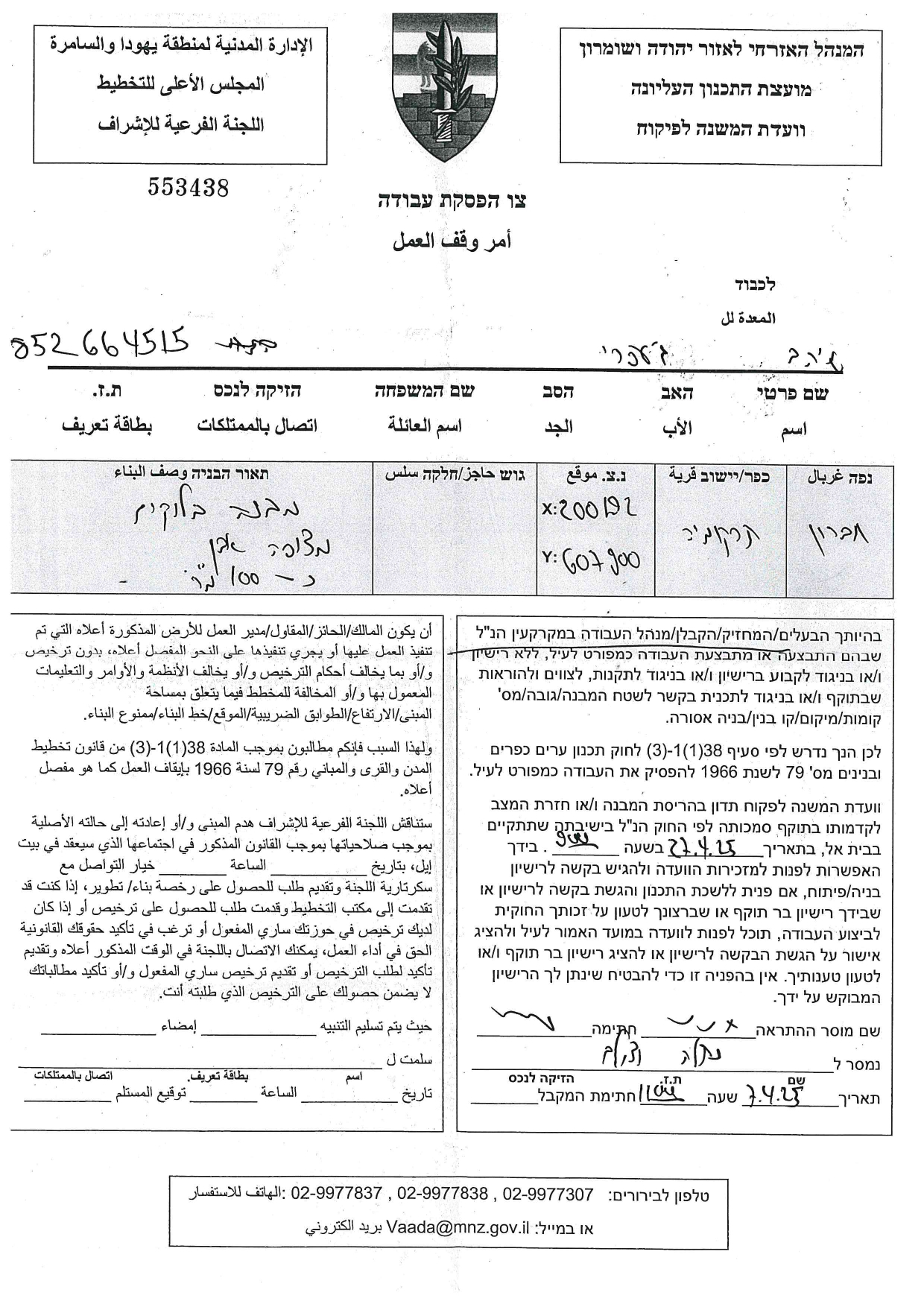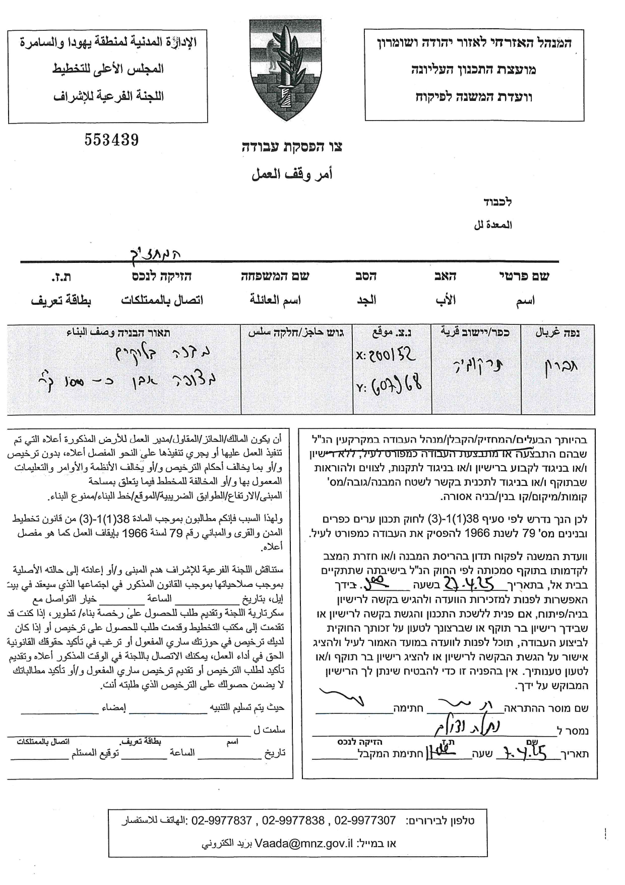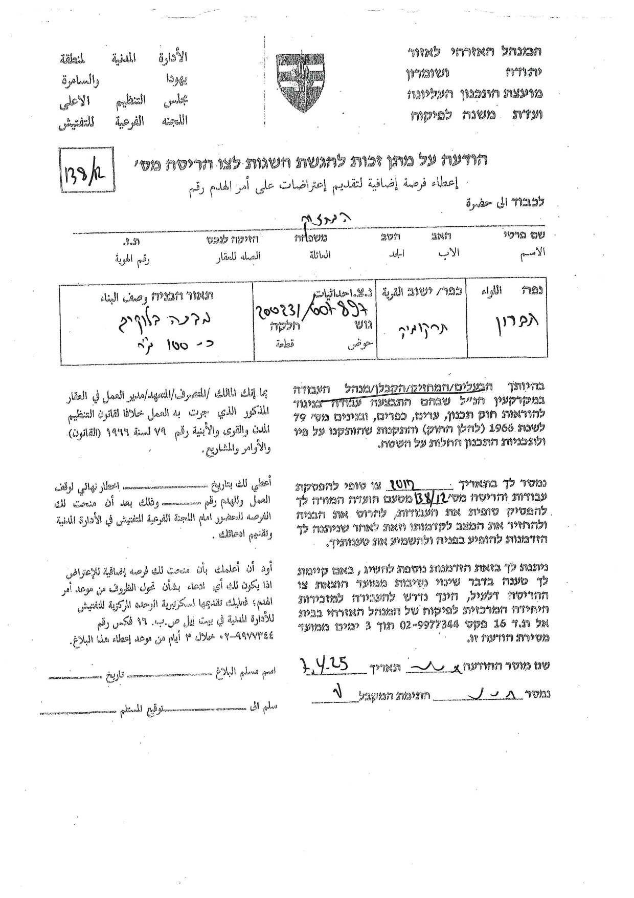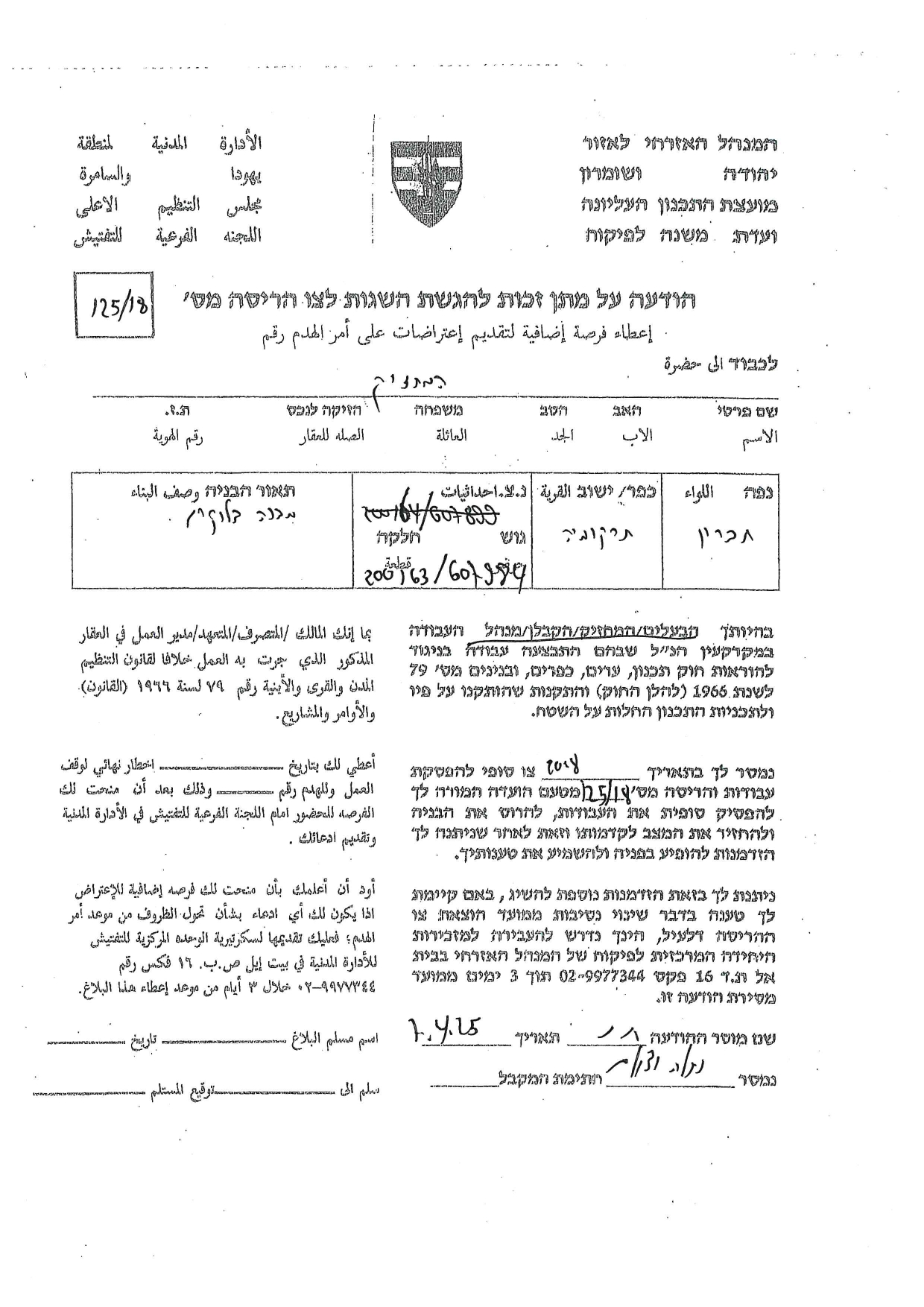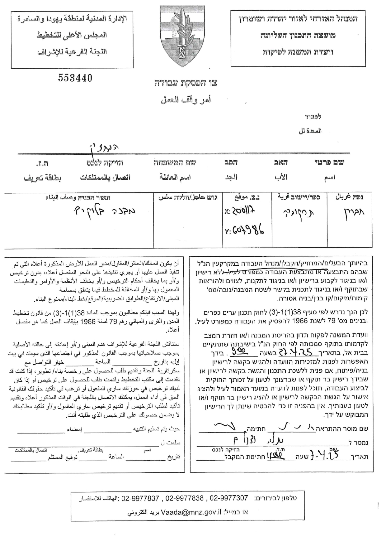 كما حددت سلطات الاحتلال في متن إخطاراتها تاريخ ( 27/4/2025) موعداً لانعقاد جلسة لما يسمى باللجنة الفرعية للتفتيش، التي ستعقد جلستها في مقرها بمستعمرة " بيت ايل" وستناقش فيها ما أسمته " هدم البناء أو إرجاع المكان إلى حالته السابقة".