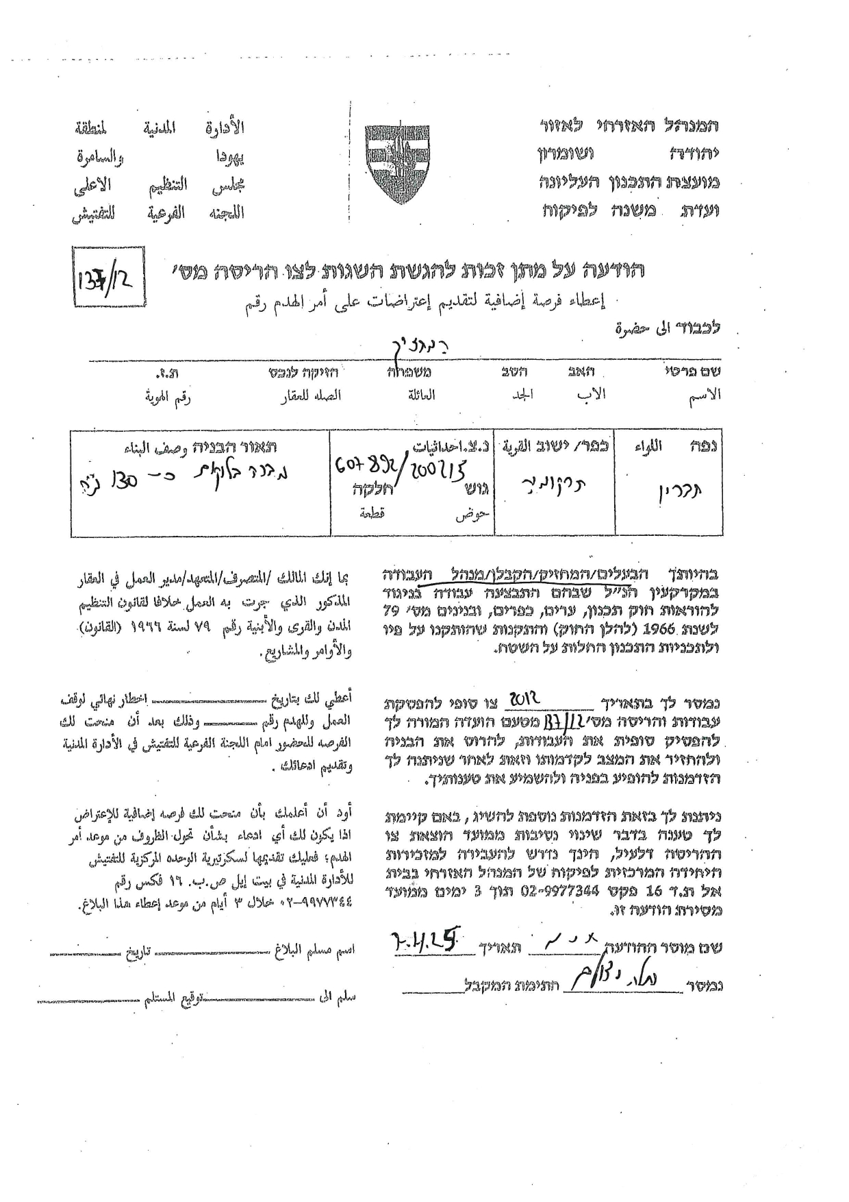 ويوضح الجدول التالي أسماء المواطنين الذين تلقوا أوامر هدم في منازلهم: