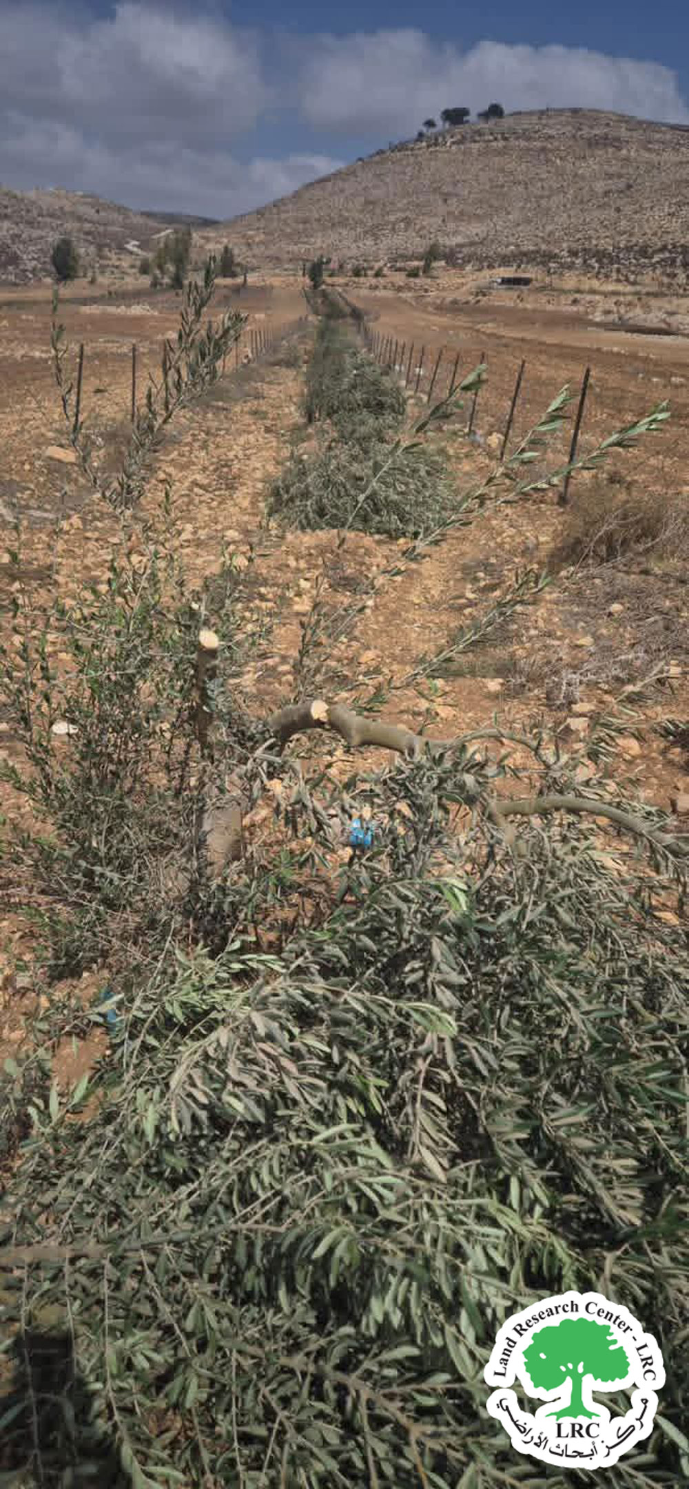 "أمتلك ستة دونمات مزروعة بأشجار الزيتون بعمر 25 عاماً، قبل أحداث حرب غزة كنت أتواجد في أرضي يومياً لساعات طويلة، وكانت تنتج ما لا يقل عن 20 تنكة زيت زيتون في المواسم الجيدة، لكن بعد حرب غزة لم أتمكن نهائياً من دخول أرضي بسبب إغلاق الاحتلال للمنطقة، في حين أُقيمت ثلاث بؤر استعمارية فيها. المستعمرون يقومون بشكل دوري بالاعتداء على الأراضي في منطقة مرج سيع. فقد أحرقوا خزان مياه يعود لي، وأتلفوا معرشات العنب في قطعة أرض مجاورة تعود لي أيضاً، ومؤخراً سمعت عن قيام المستعمرين بالاعتداء على كامل أراضي منطقة مرج سيع، فتوجهت عبر طرق ترابية إلى منطقة قريبة من أرضي، وهناك كانت الصدمة عندما شاهدت أن جميع الأشجار قد تم استهدافها ونشر سيقانها بطريقة وحشية، حاولت الدخول إلى أرضي لكن جيش الاحتلال منعني بل وحاول الاعتداء عليّ، وشاهدت المستعمرين يتواجدون هناك تحت حراسة الجيش. حاولنا التقدم دون جدوى، إنها جريمة تضاف إلى سجل المستعمرين الذين يسعون للسيطرة التامة على المنطقة بأكملها".