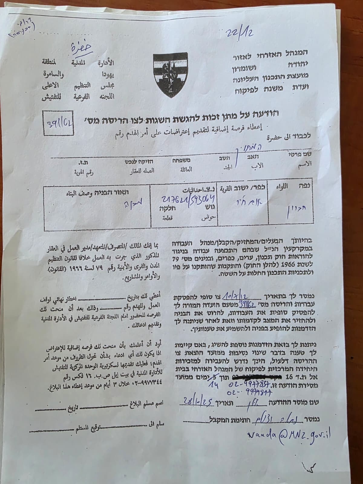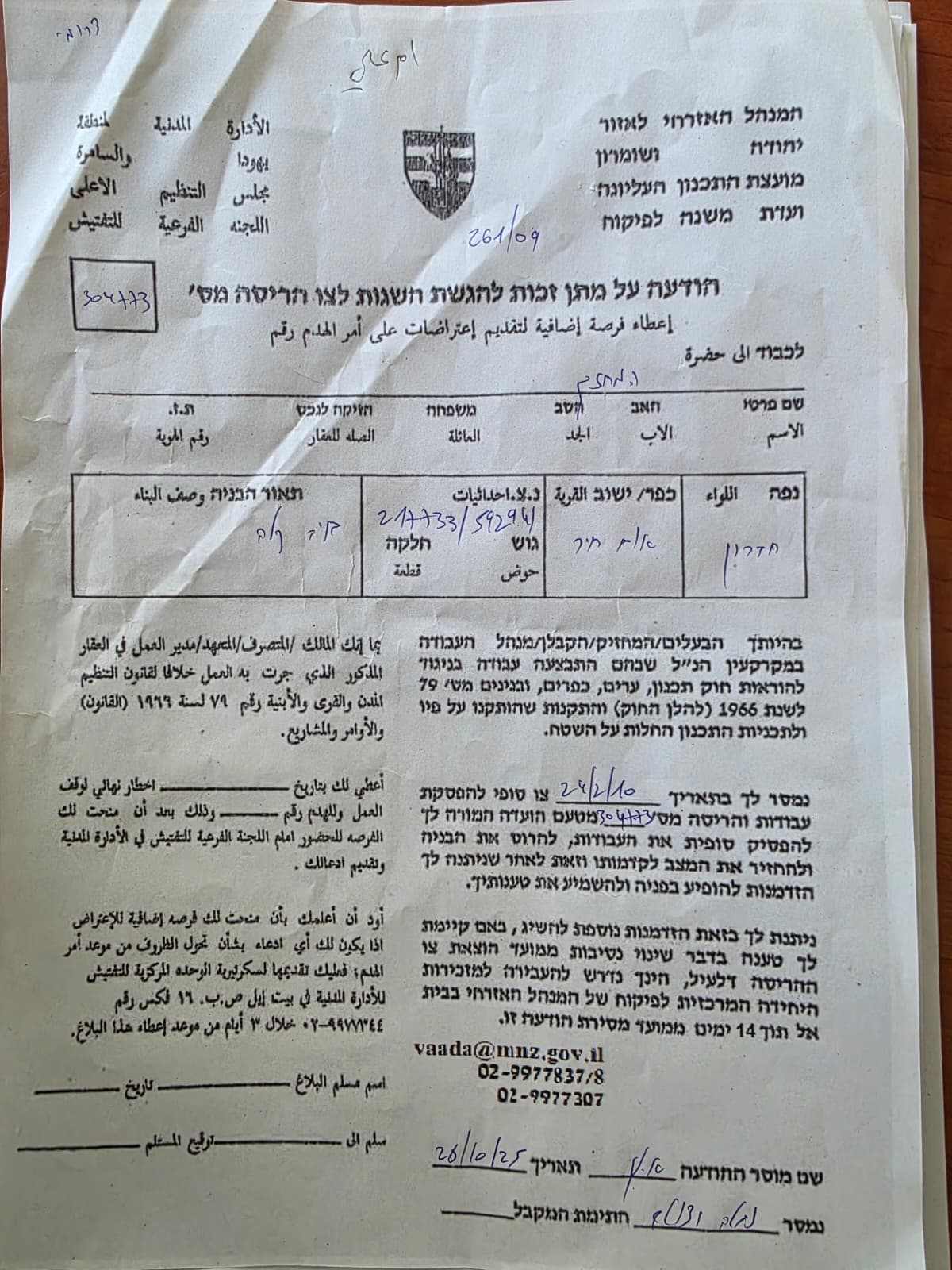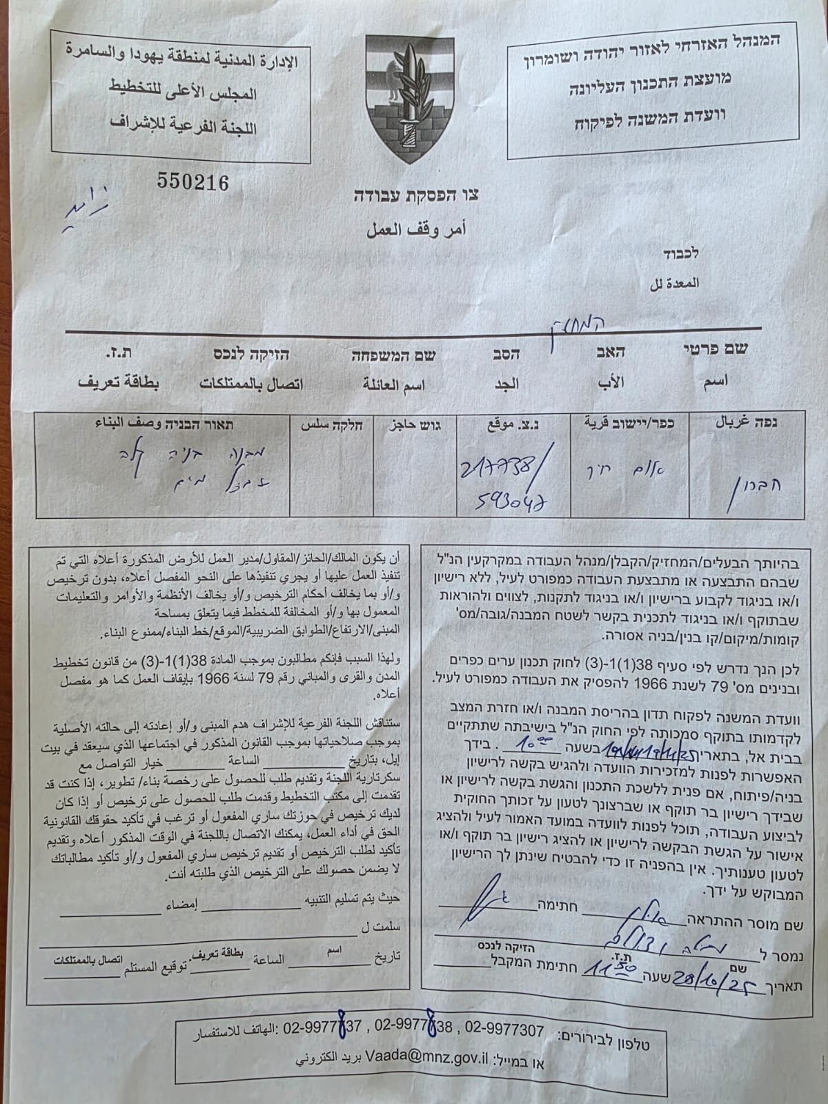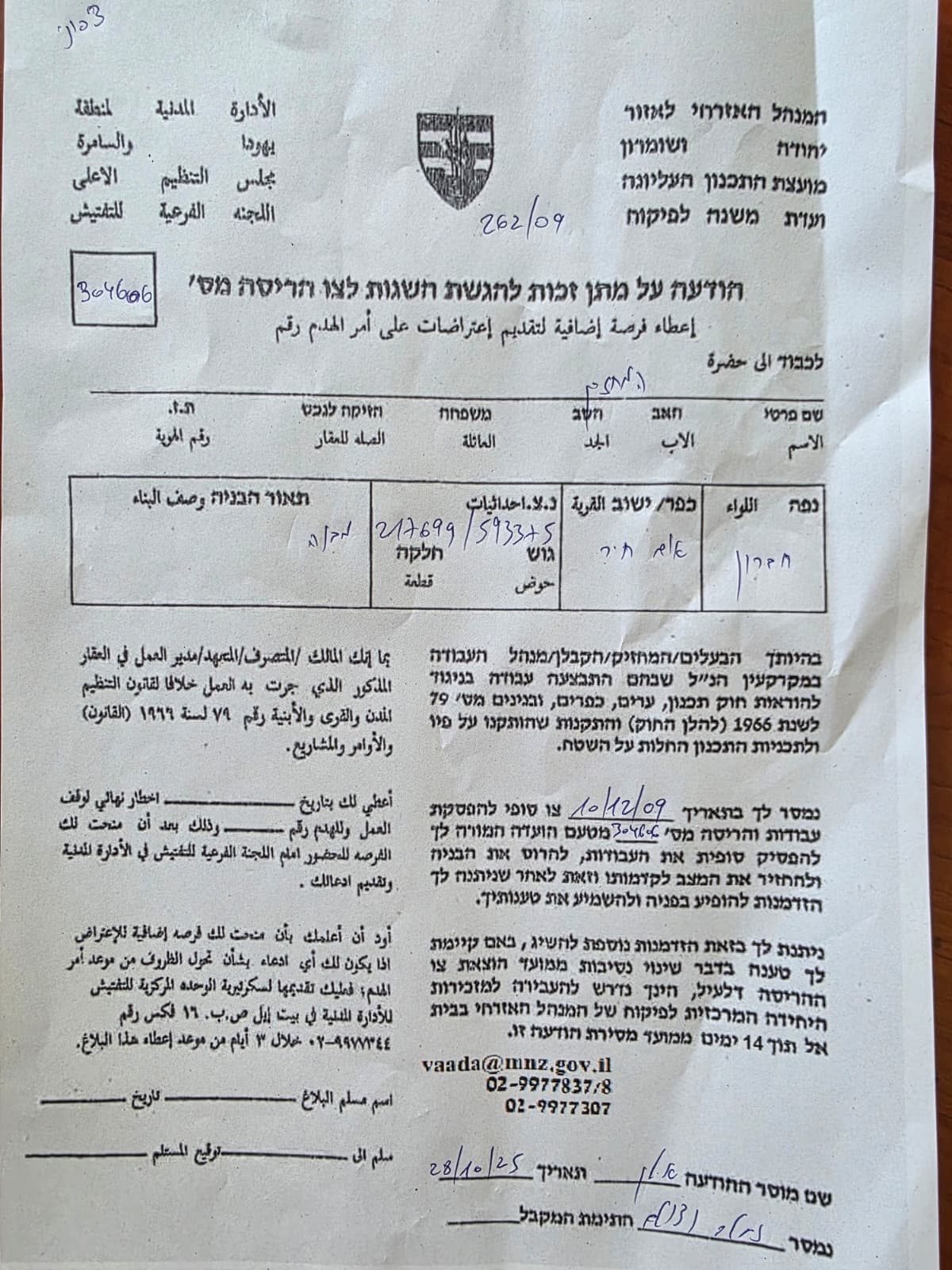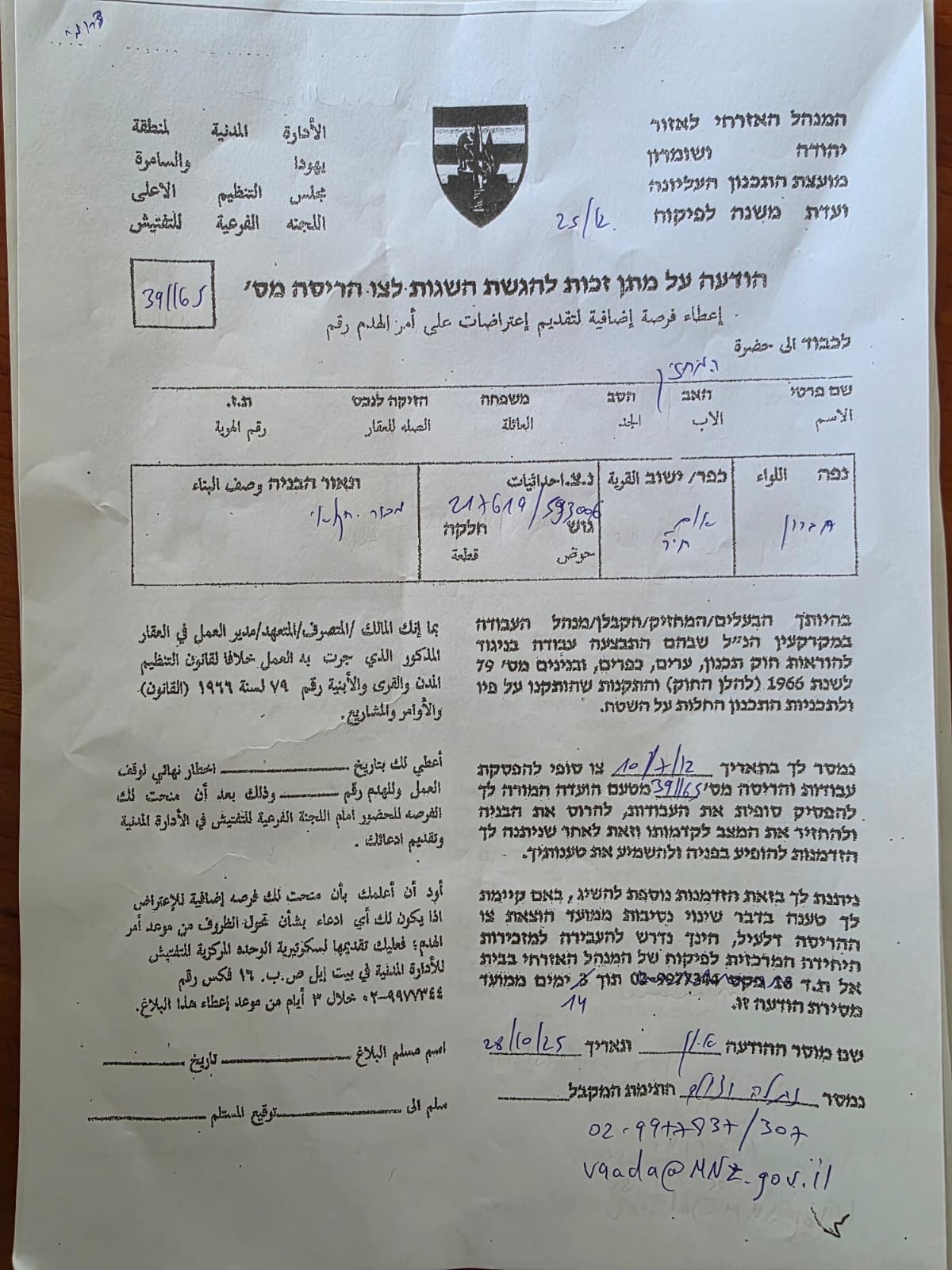 مسافر يطا – في 27/10/2025 اقتحمت قوات الاحتلال الإسرائيلي، صباح اليوم، برفقة ما تُسمى بـ"الإدارة المدنية"، خربة أم الخير، وسلمت الأهالي مجموعة من الإخطارات النهائية بالهدم، في خطوة يخشى السكان أن تُمهّد لحملة هدم واسعة خلال الأيام القادمة.