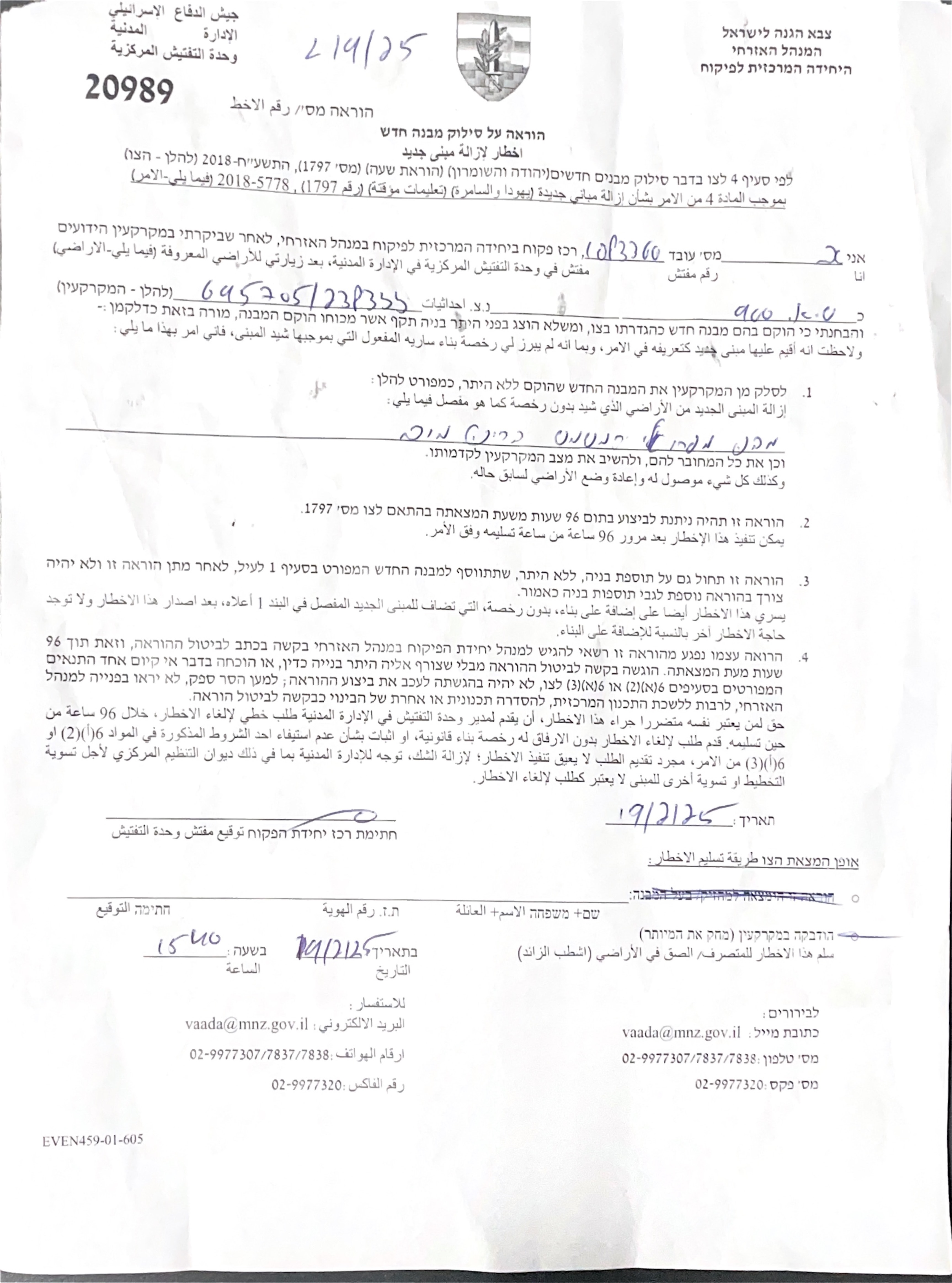 On Wednesday morning, 19/2/2025. The Palestinian Jordan valley area witnessed a new assault by the so-called building and planning inspector of the civil administration.