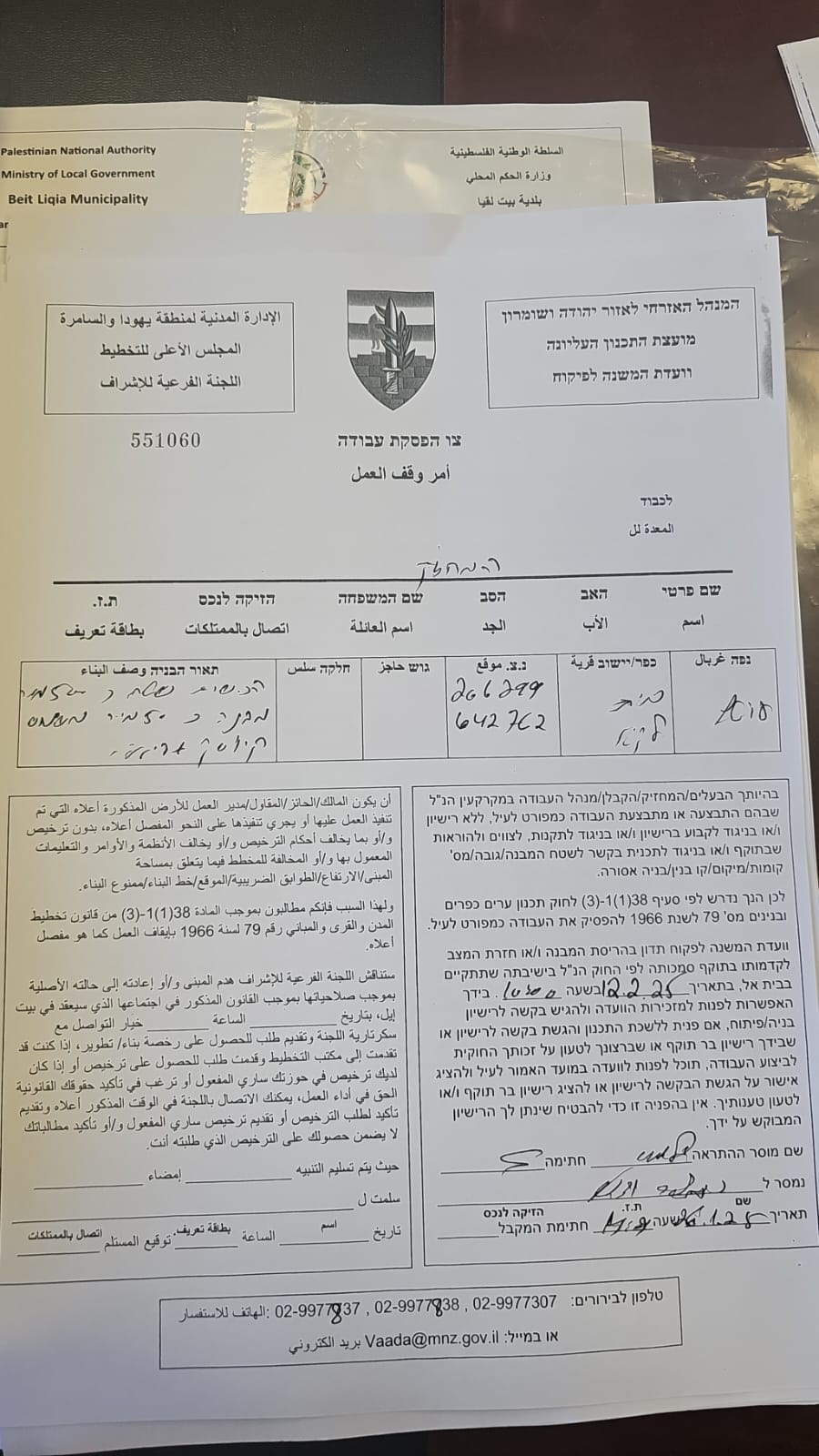 • 2025-08-07 The Israeli Military Occupation Notifies 40 Fruitful Olive Trees with Removing in Al Nabi Salih Village/ North Ramallah