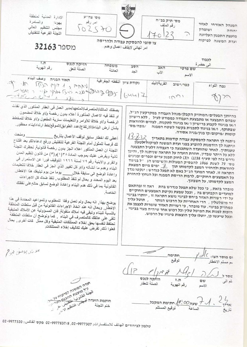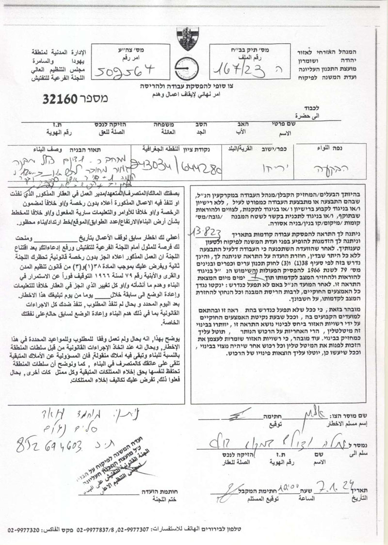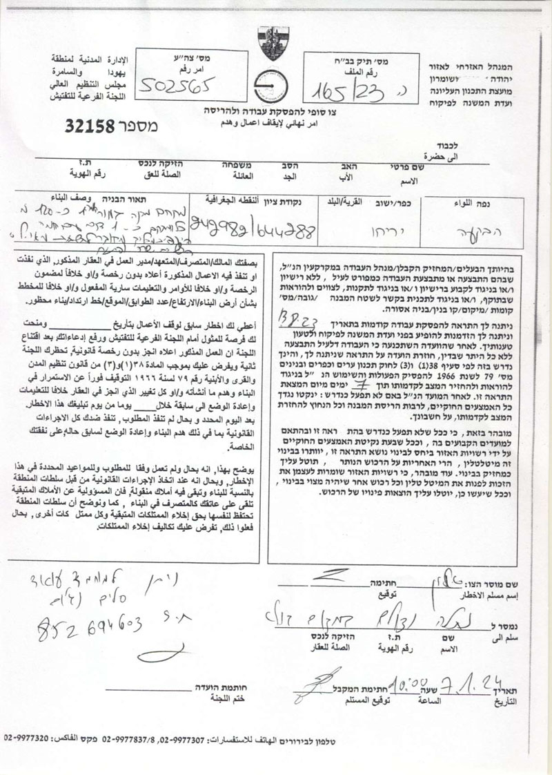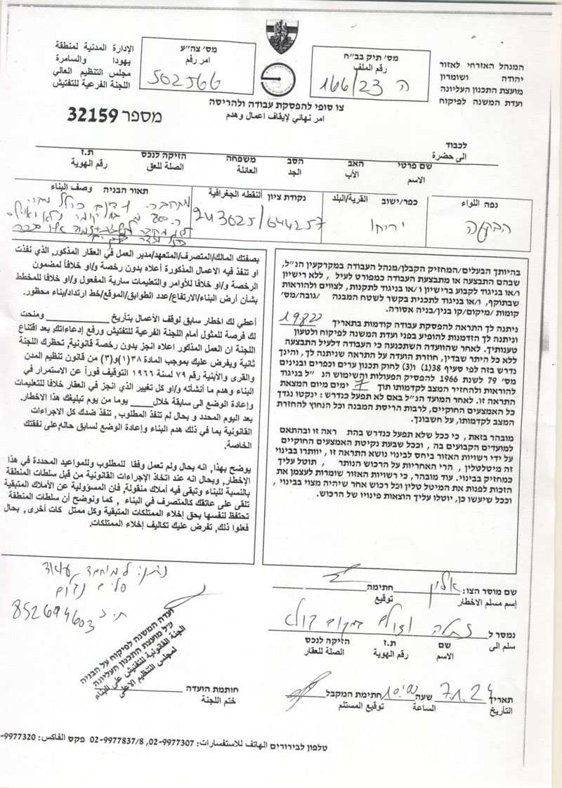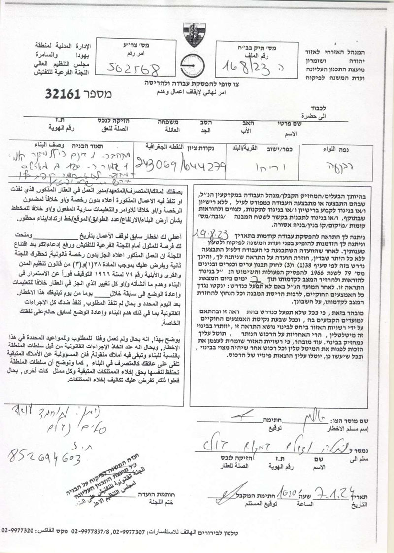 • 2025-08-07 The Israeli Military Occupation Notifies 40 Fruitful Olive Trees with Removing in Al Nabi Salih Village/ North Ramallah