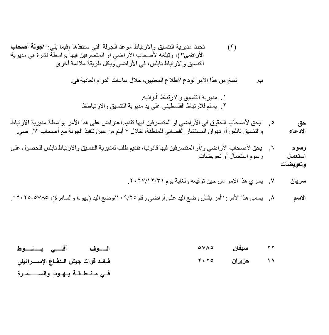 • 2025-08-07 The Israeli Military Occupation Notifies 40 Fruitful Olive Trees with Removing in Al Nabi Salih Village/ North Ramallah