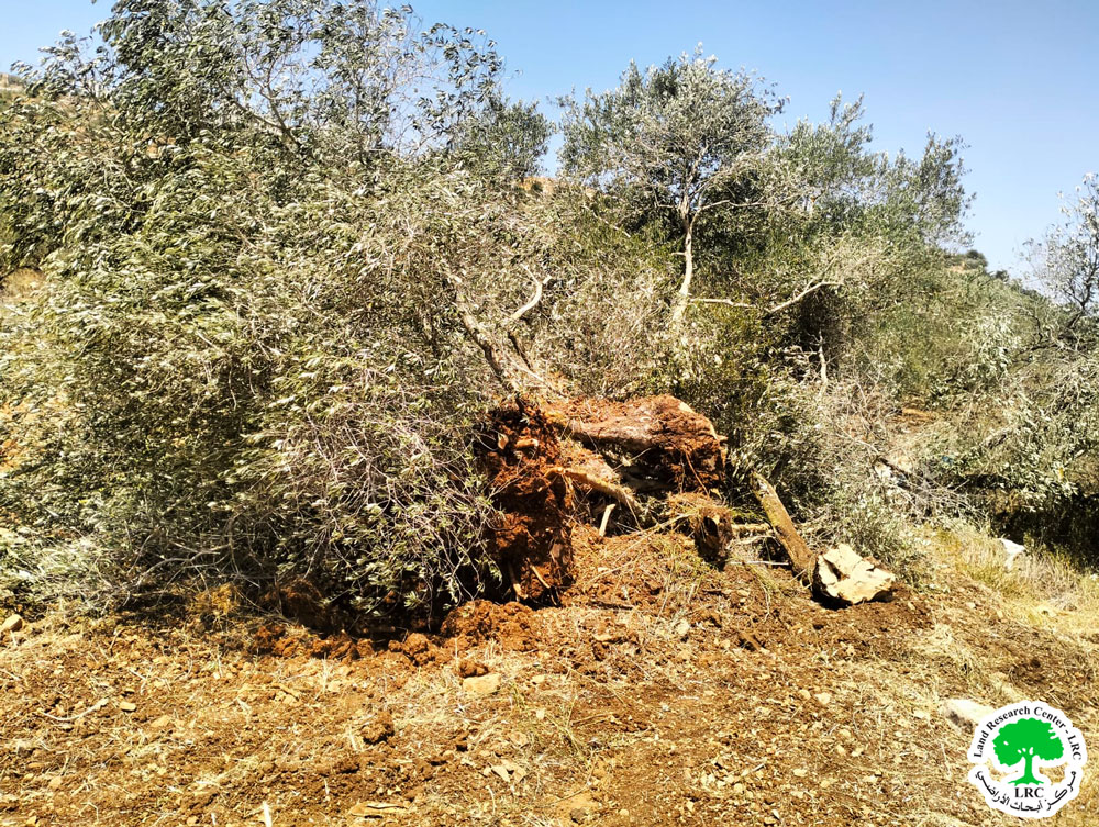 The Israeli Occupation Uproot 42 Olive Trees from Qaryut Village Lands/ Nablus Governorate