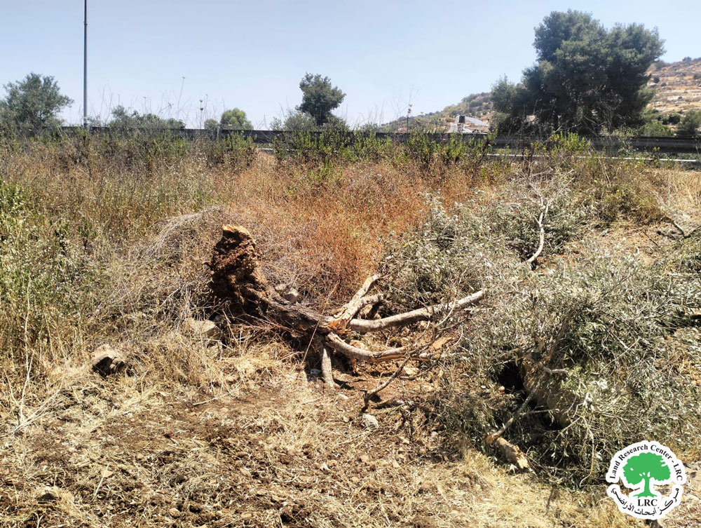 The Israeli Occupation Uproot 42 Olive Trees from Qaryut Village Lands/ Nablus Governorate