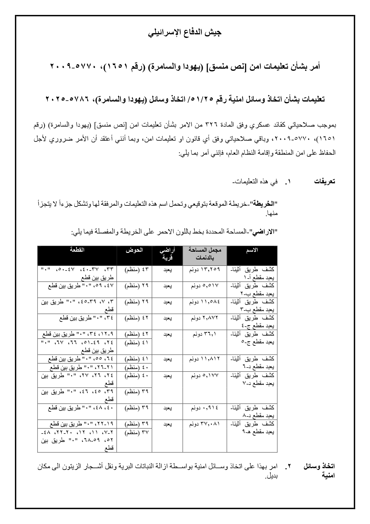 • 2025-08-07 The Israeli Military Occupation Notifies 40 Fruitful Olive Trees with Removing in Al Nabi Salih Village/ North Ramallah