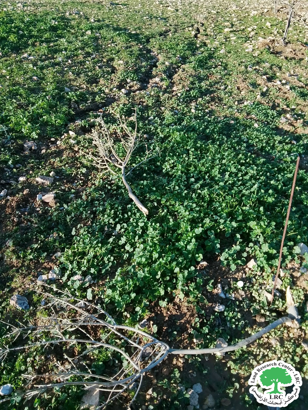 The Israeli Occupation Uproot 42 Olive Trees from Qaryut Village Lands/ Nablus Governorate